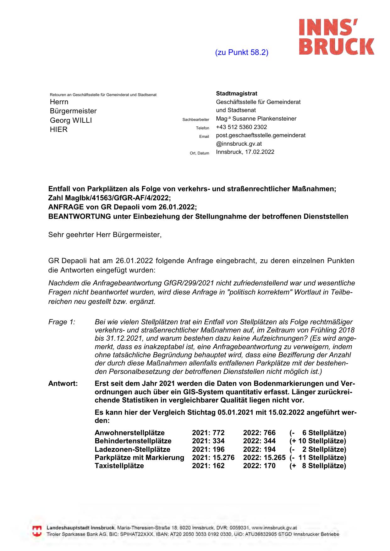 GR Depaoli hat am 26.01.2022 folgende Anfrage eingebracht, zu deren einzelnen Punkten