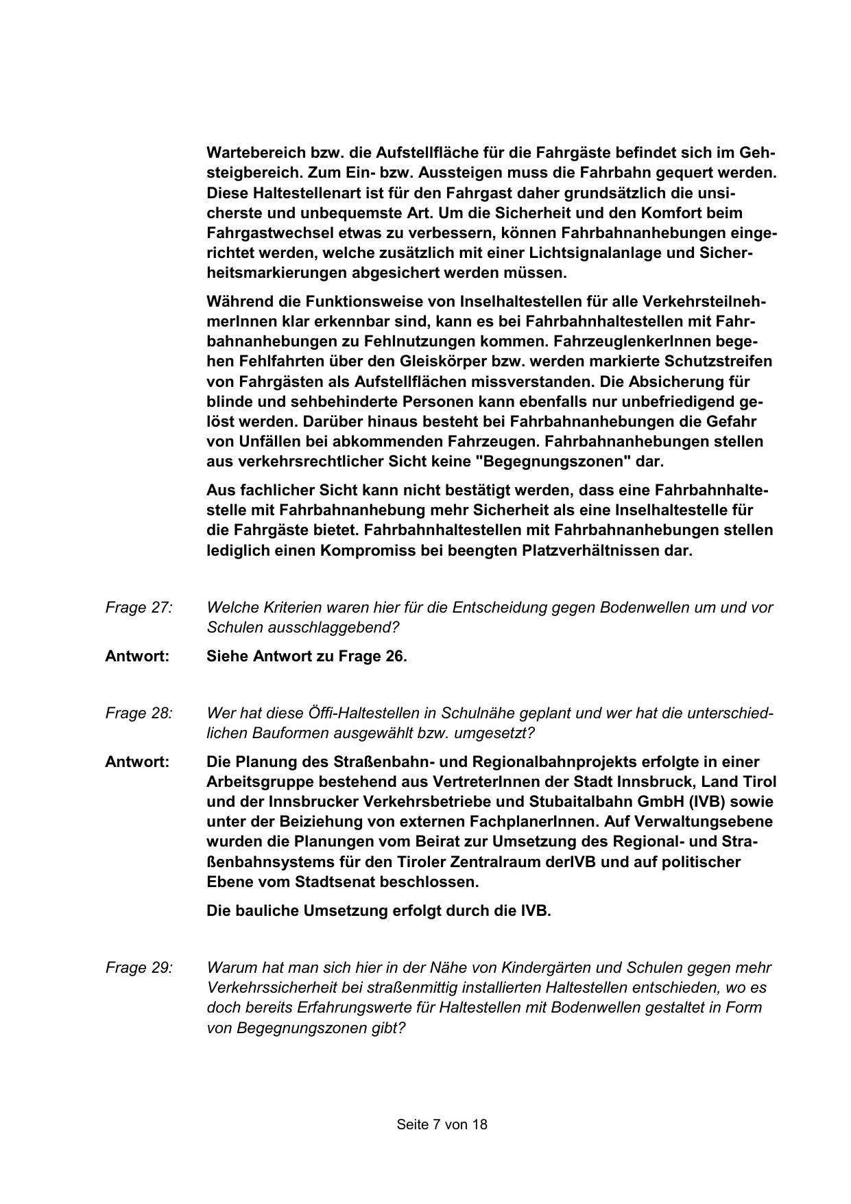 Aus fachlicher Sicht kann nicht bestätigt werden, dass eine Fahrbahnhaltestelle mit Fahrbahnanhebung mehr Sicherheit als eine Inselhaltestelle für