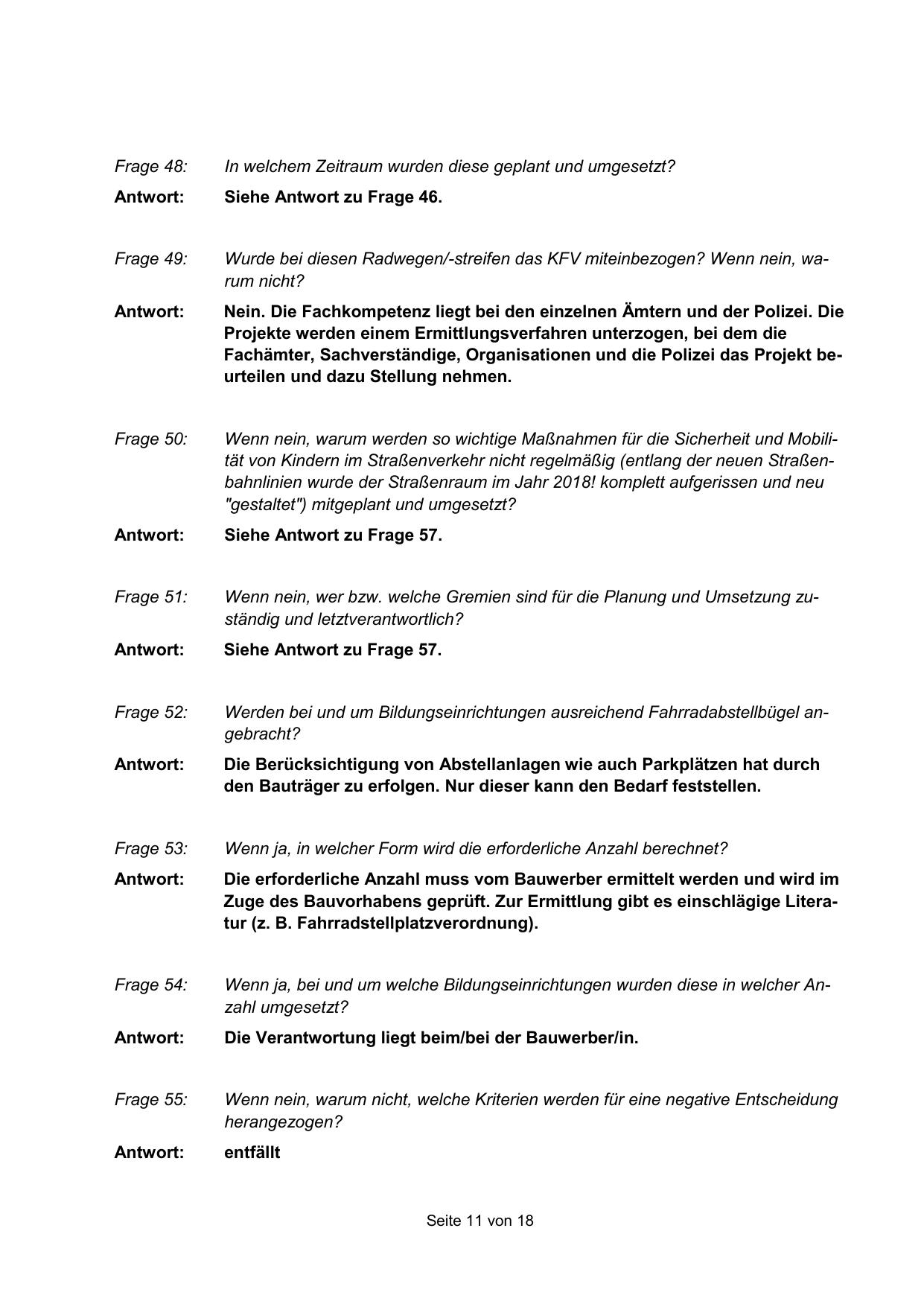 Wurde bei diesen Radwegen/-streifen das KFV miteinbezogen? Wenn nein, warum nicht?