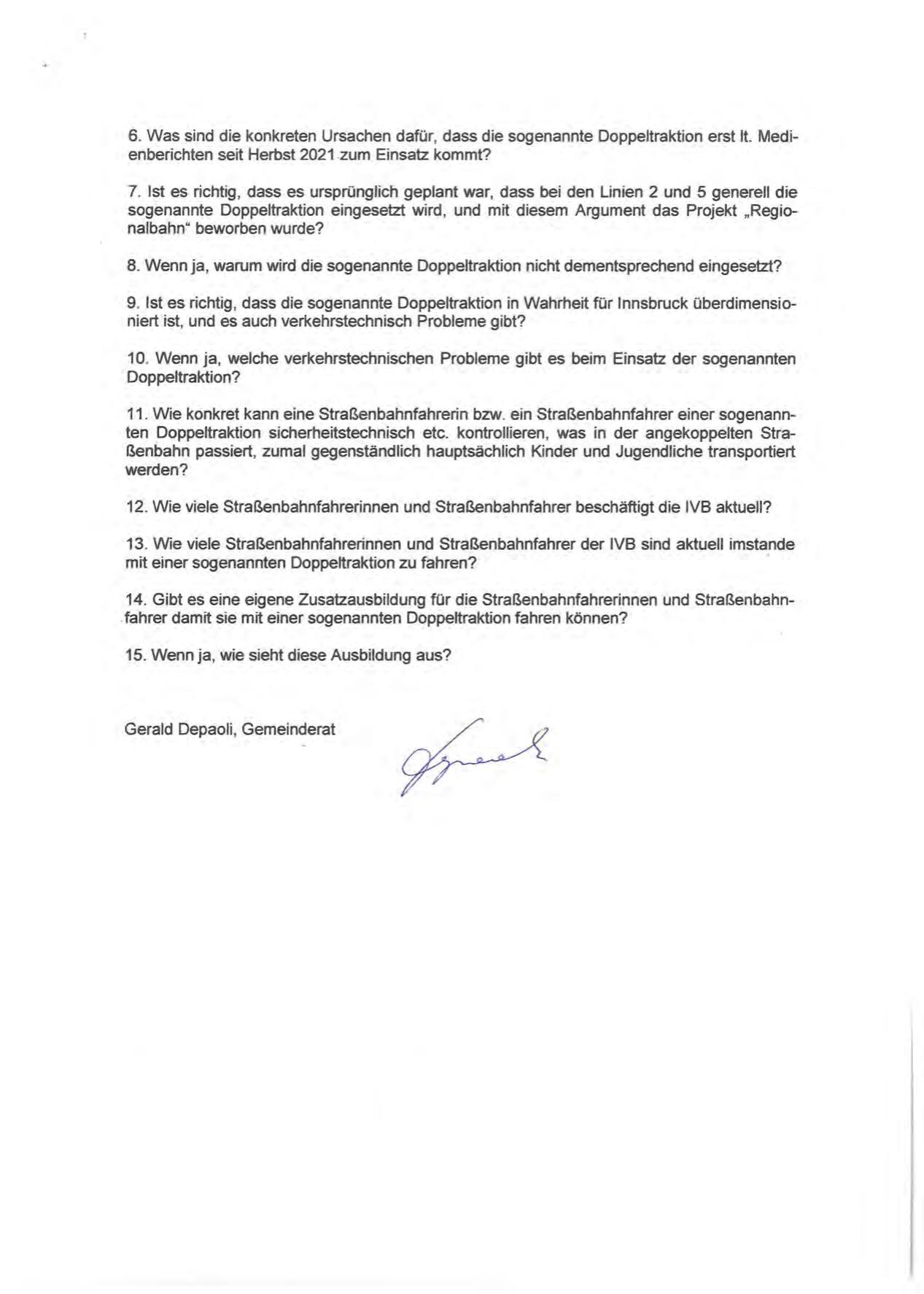 9. Ist es richtig, dass die sogenannte Doppeltraktion in Wahrheit für Innsbruck überdimensioniert ist, und es auch verkehrstechnisch Probleme gibt?