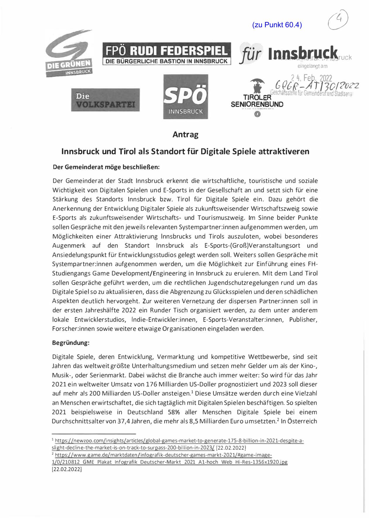 Stärkung des Standorts Innsbruck bzw. Tirol für Digitale Spiele ein. Dazu gehört die