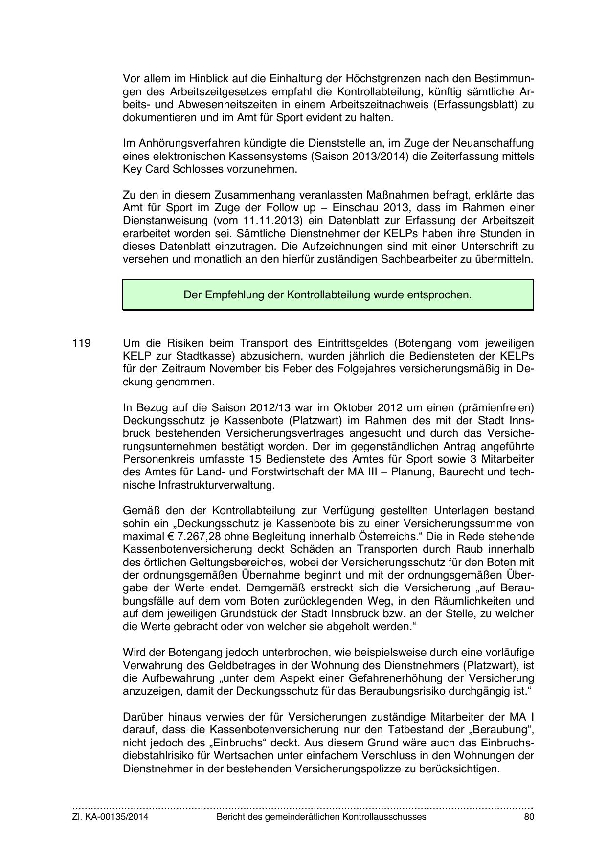 Deckungsschutz je Kassenbote (Platzwart) im Rahmen des mit der Stadt Innsbruck bestehenden Versicherungsvertrages angesucht und durch das Versicherungsunternehmen bestätigt worden. Der im gegenständlichen Antrag angeführte