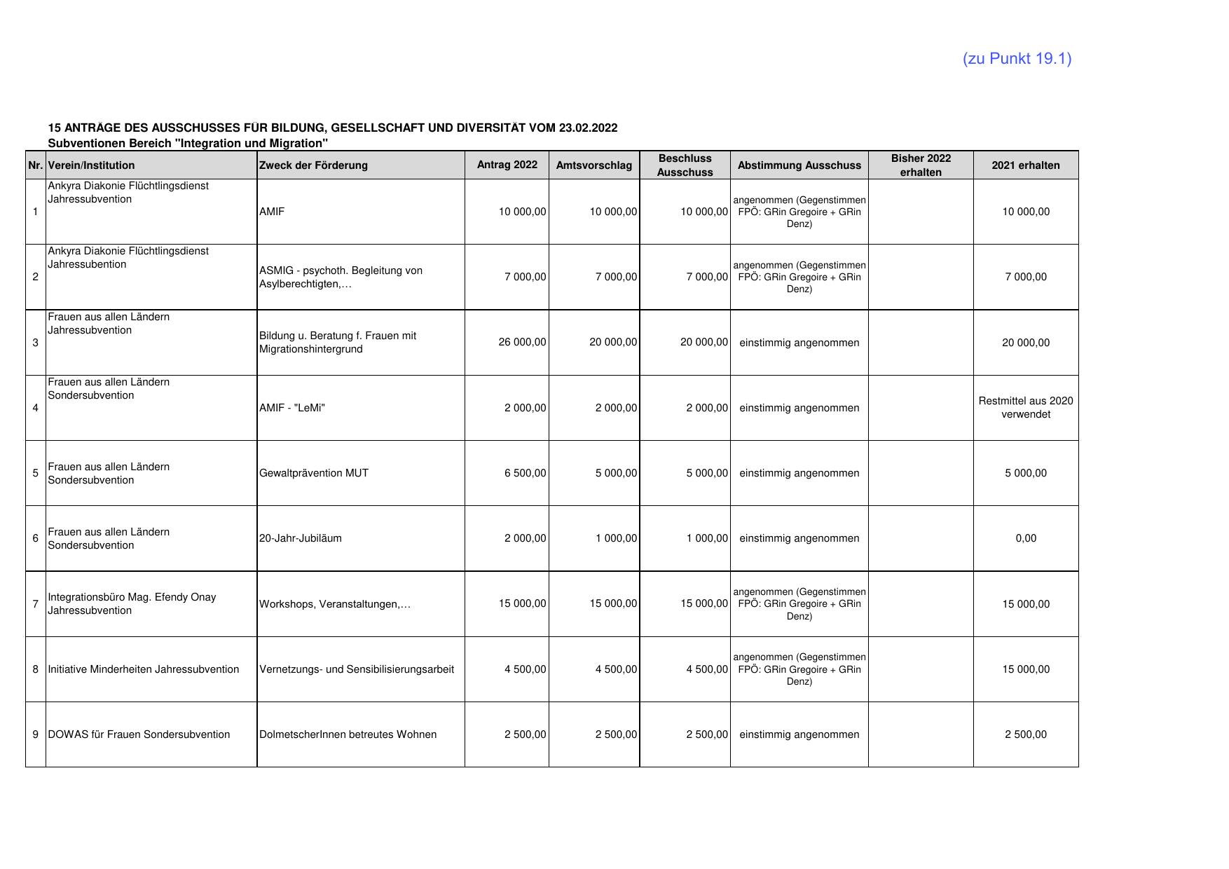 15 ANTRÄGE DES AUSSCHUSSES FÜR BILDUNG, GESELLSCHAFT UND DIVERSITÄT VOM 23.02.2022