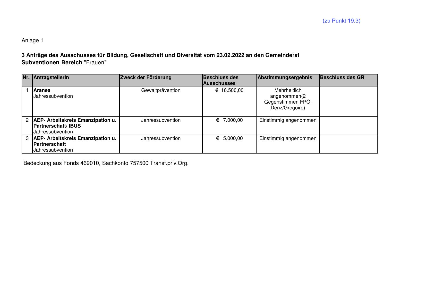3 Anträge des Ausschusses für Bildung, Gesellschaft und Diversität vom 23.02.2022 an den Gemeinderat