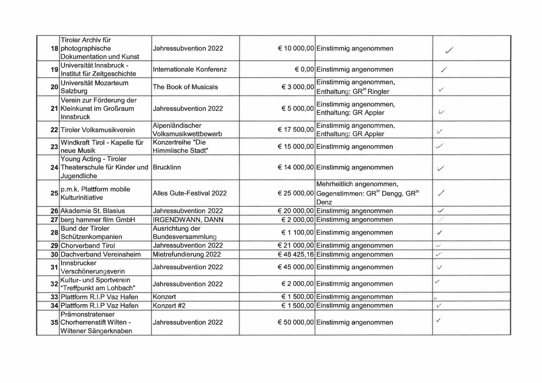 € 25 000,00 Gegenstimmen: GRin Dengg, GR in