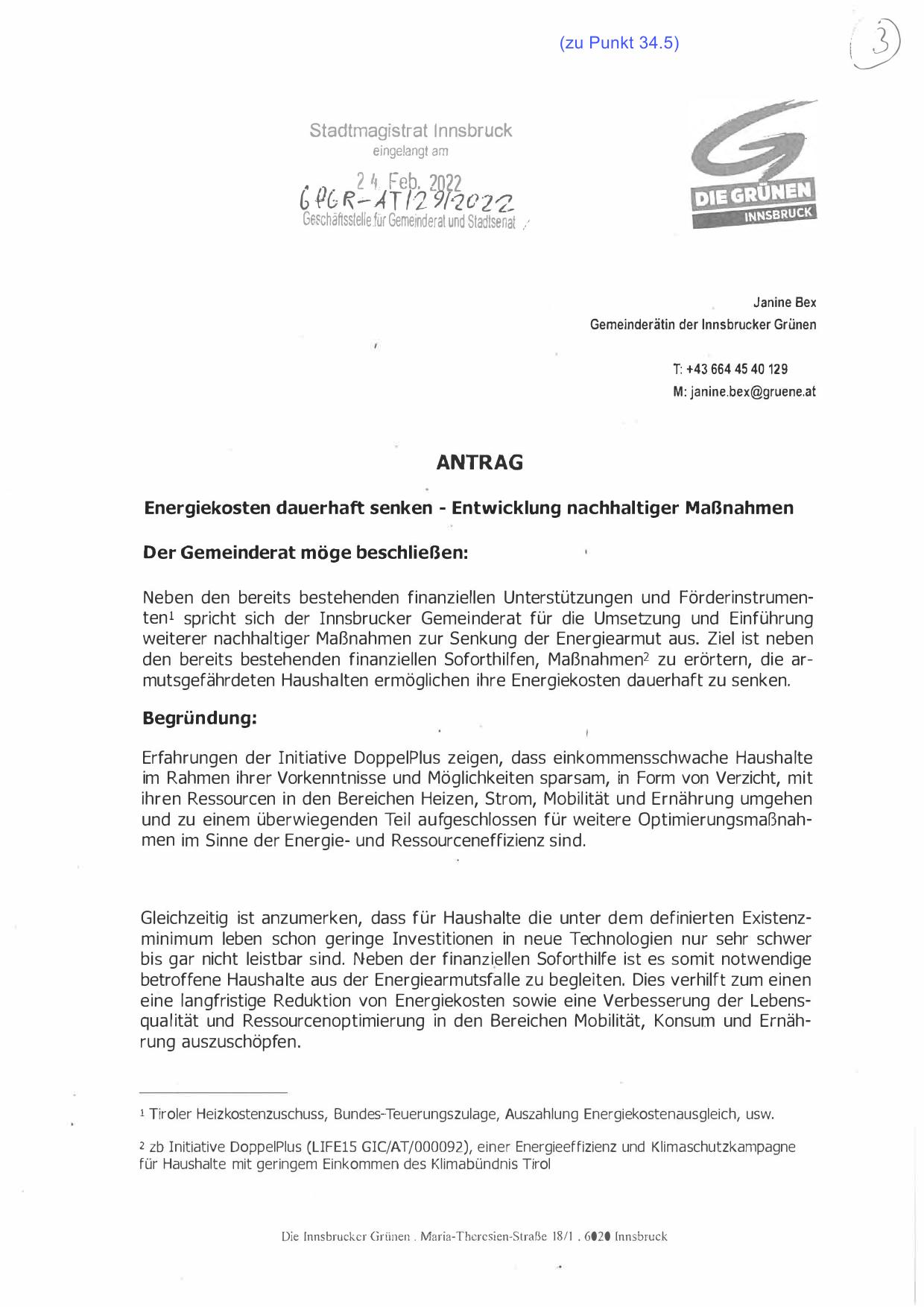 ten 1 spricht sich der Innsbrucker Gemeinderat für die Umsetzung und Einführung