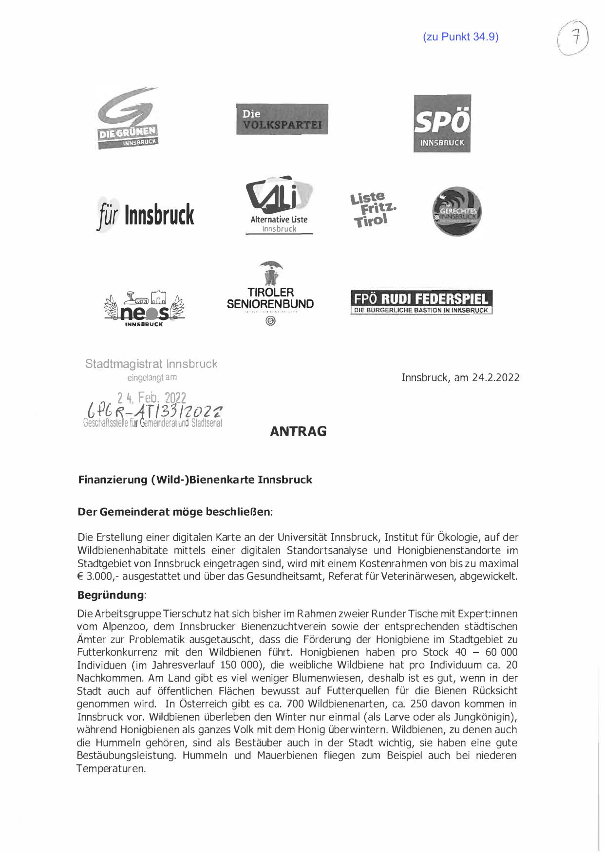 Finanzierung (Wild-)Bienenka rte Innsbruck