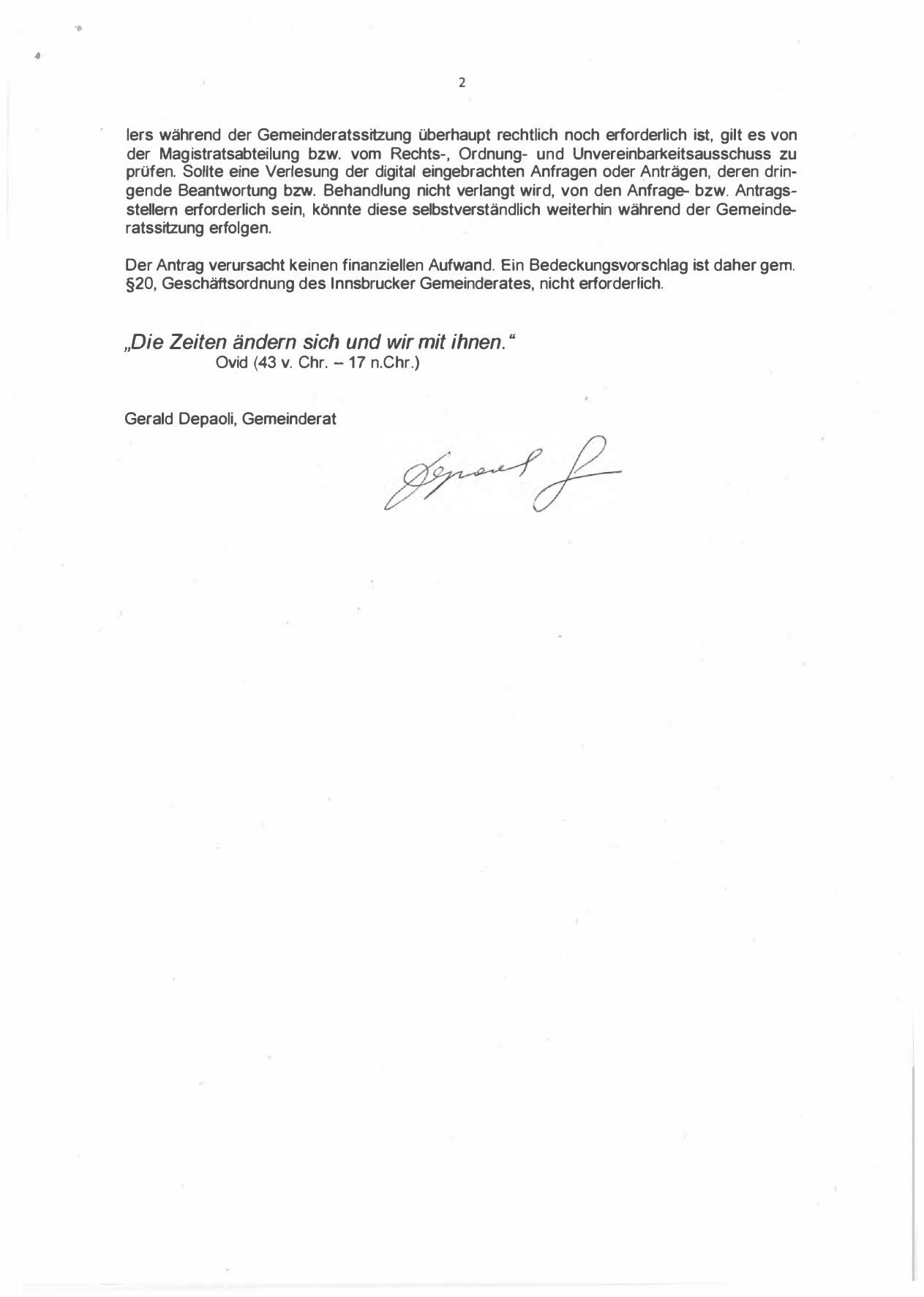 §20, Geschäftsordnung des lnnsbrucker Gemeinderates, nicht erforderlich.