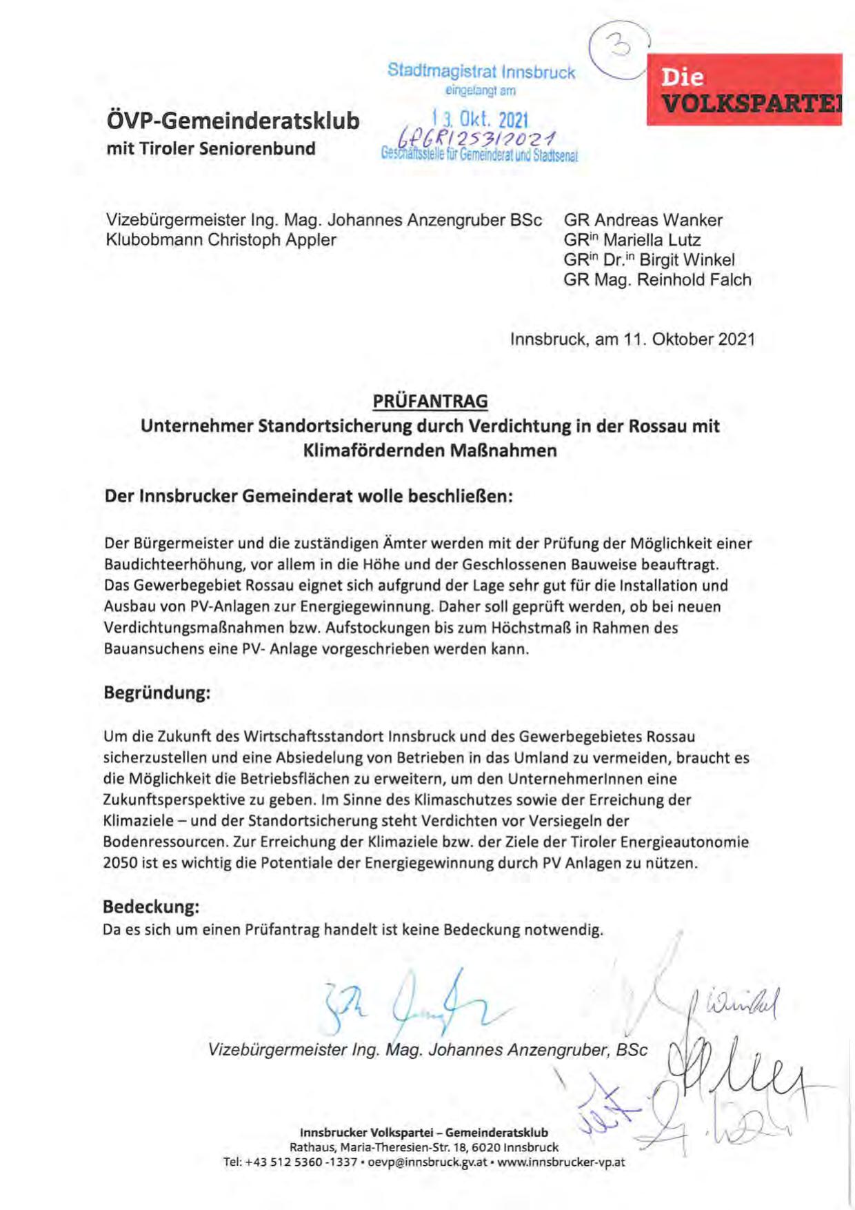 Der lnnsbrucker Gemeinderat wolle beschließen: