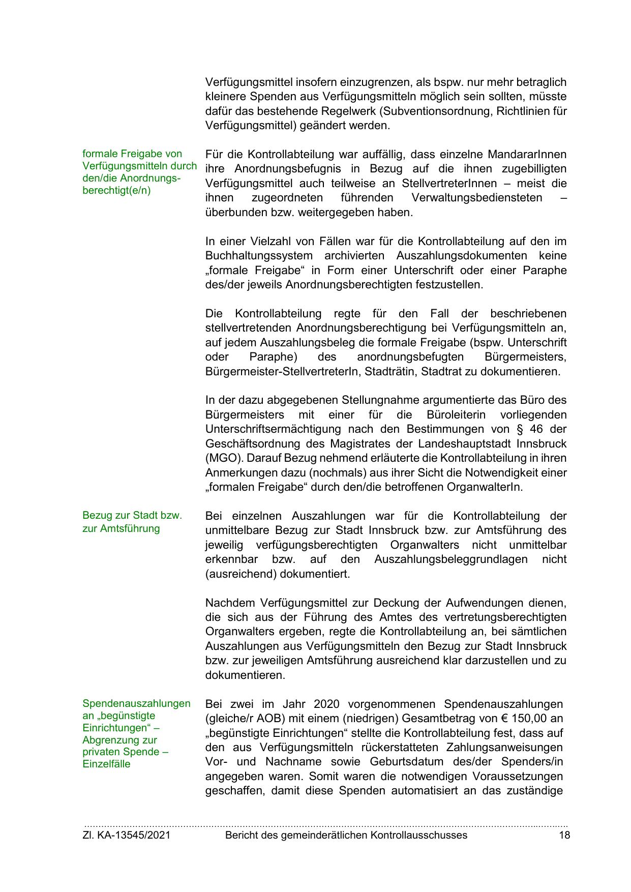 Auszahlungen aus Verfügungsmitteln den Bezug zur Stadt Innsbruck