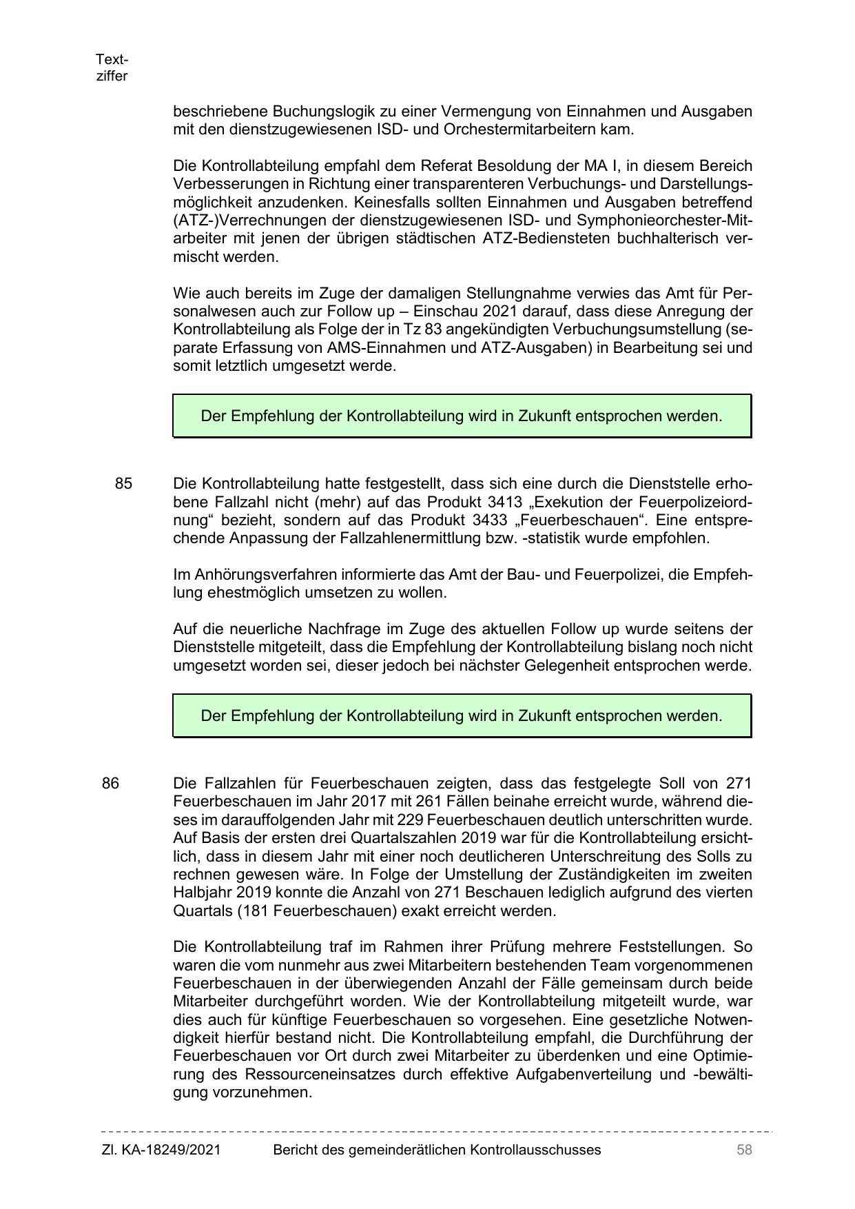 Die Kontrollabteilung hatte festgestellt, dass sich eine durch die Dienststelle erhobene Fallzahl nicht (mehr) auf das Produkt 3413 „Exekution der Feuerpolizeiordnung“ bezieht, sondern auf das Produkt 3433 „Feuerbeschauen“. Eine entsprechende Anpassung der Fallzahlenermittlung bzw. -statistik wurde empfohlen.