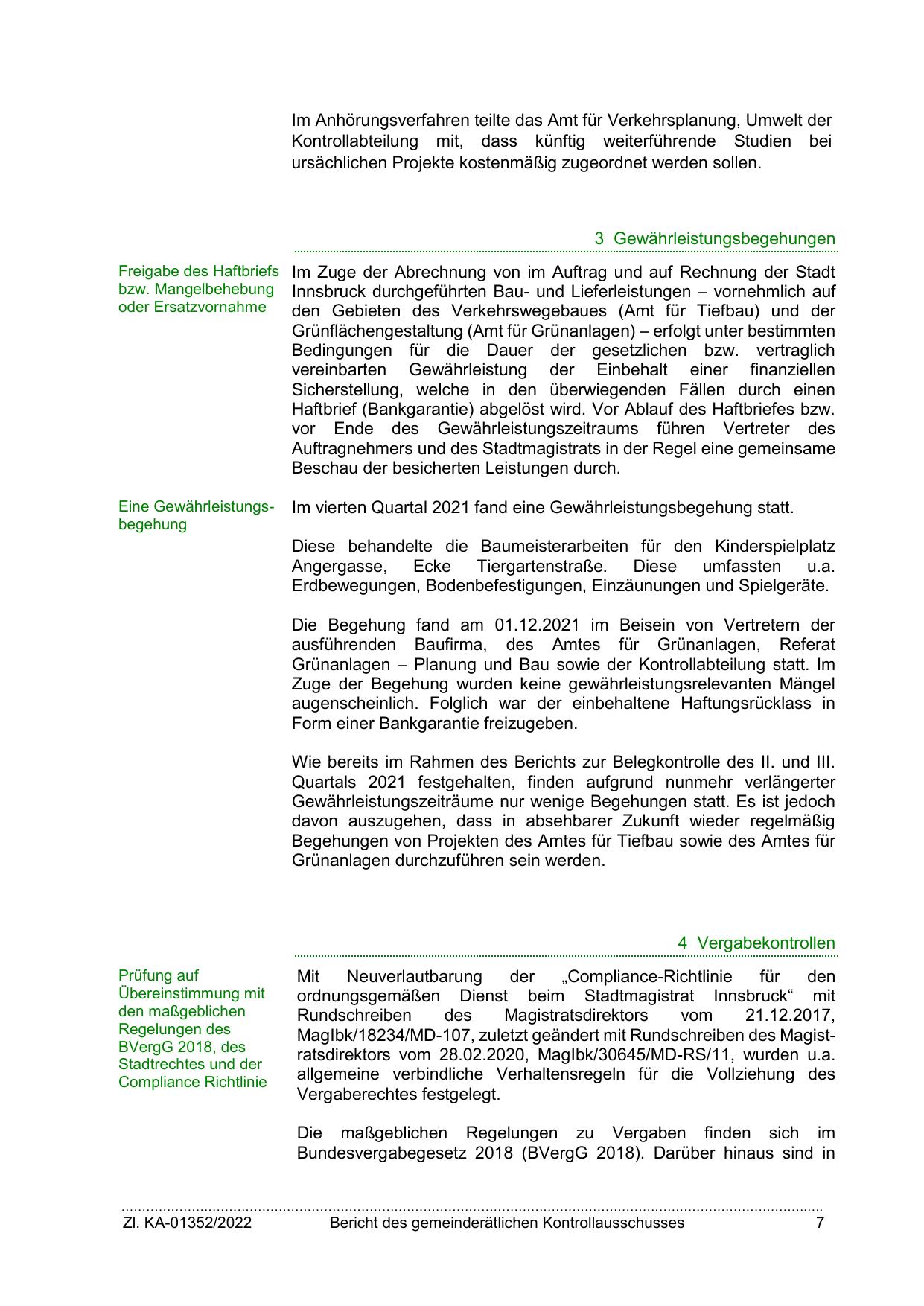 Gewährleistungszeiträume nur wenige Begehungen statt. Es ist jedoch