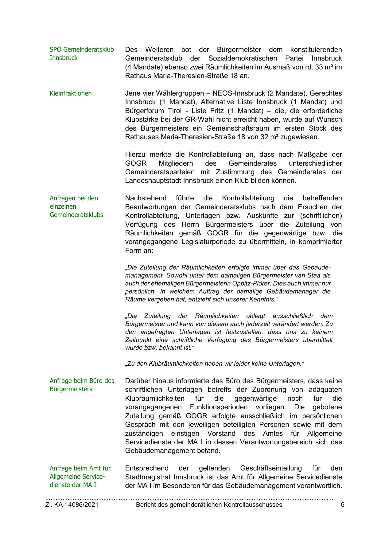 „Die Zuteilung der Räumlichkeiten erfolgte immer über das Gebäudemanagement. Sowohl unter dem damaligen Bürgermeister van Staa als