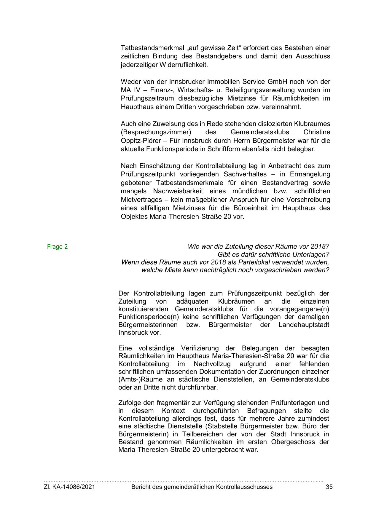 Prüfungszeitraum diesbezügliche Mietzinse für Räumlichkeiten im
