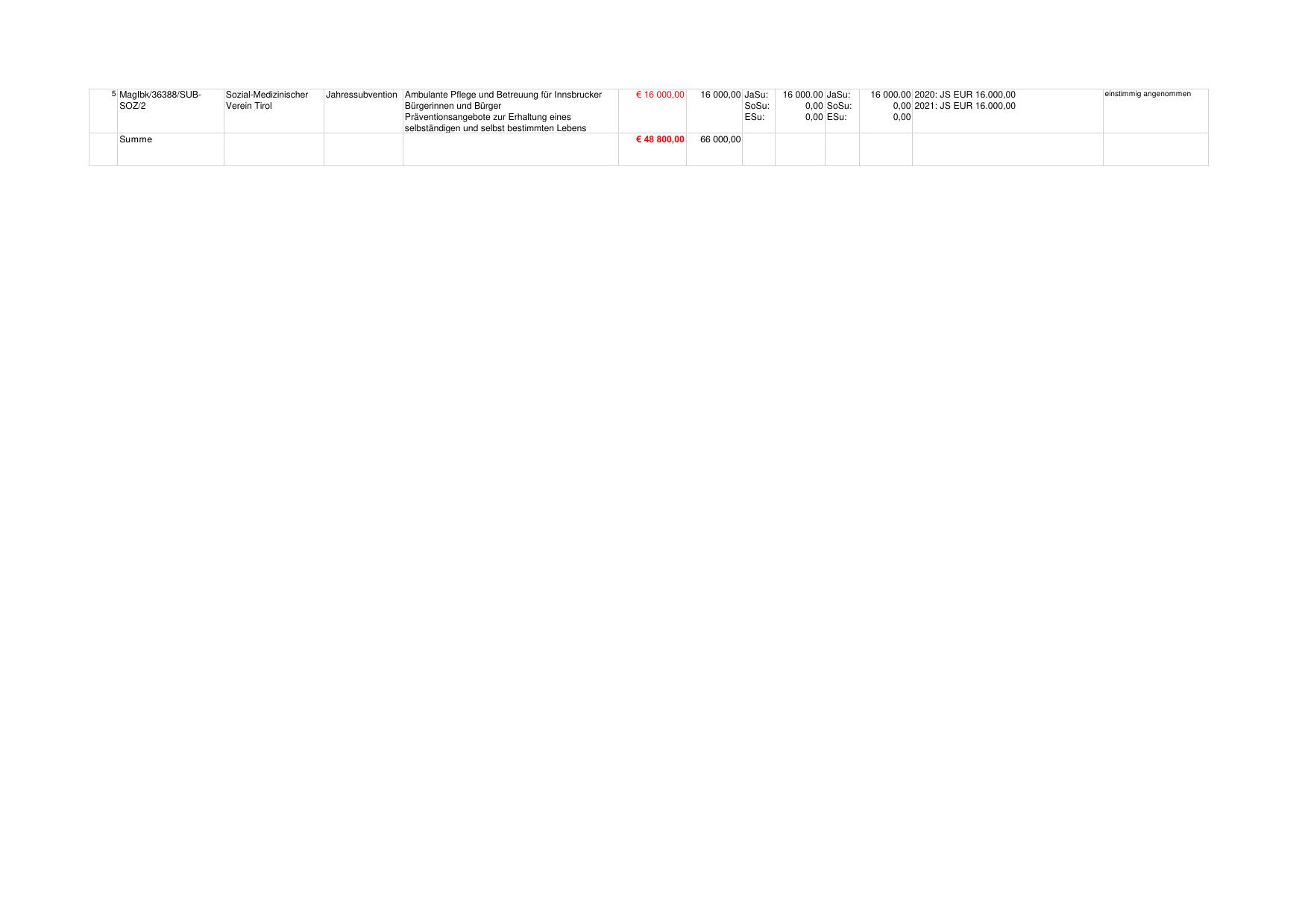 Jahressubvention Ambulante Pflege und Betreuung für Innsbrucker