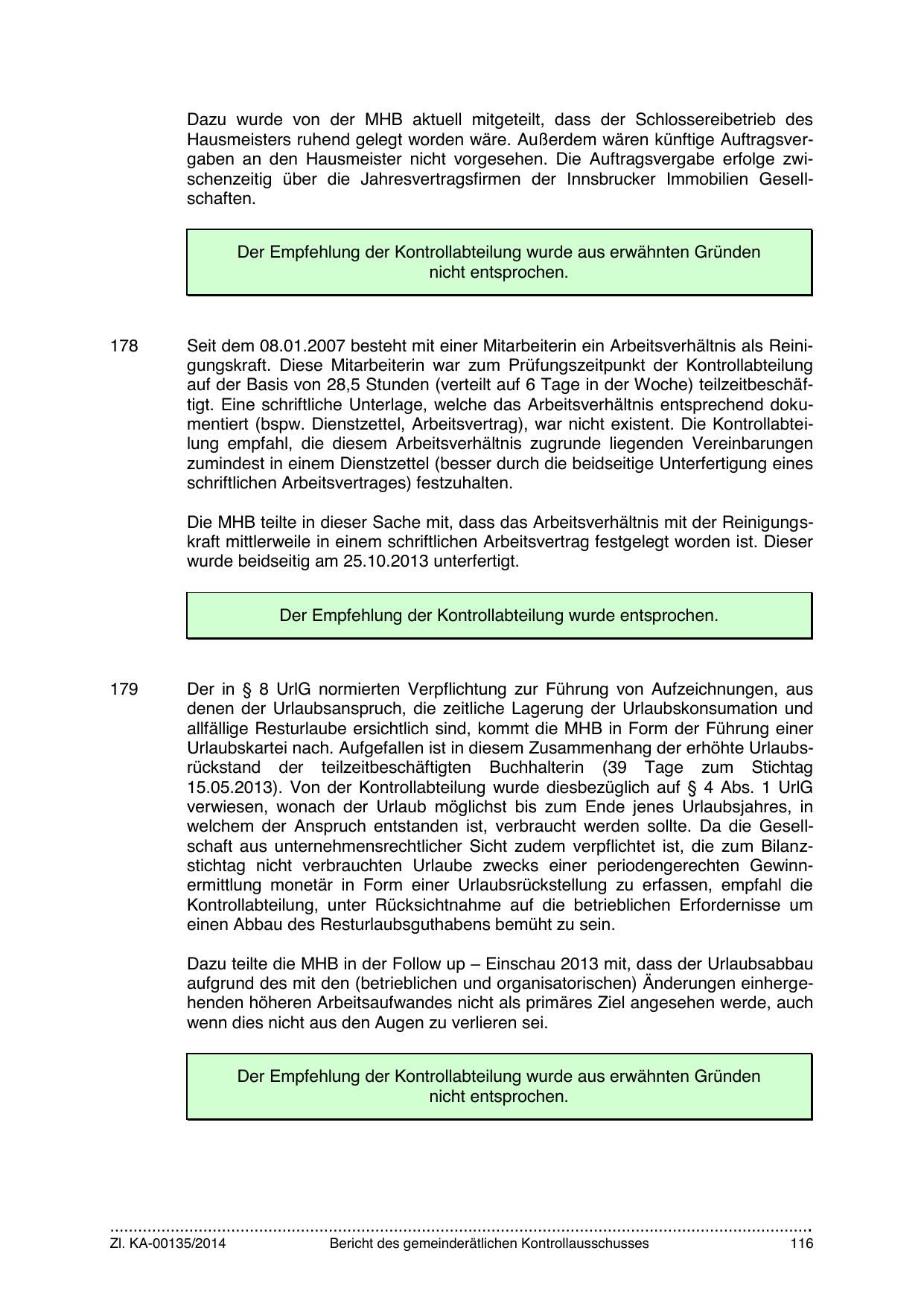 Dazu teilte die MHB in der Follow up – Einschau 2013 mit, dass der Urlaubsabbau
