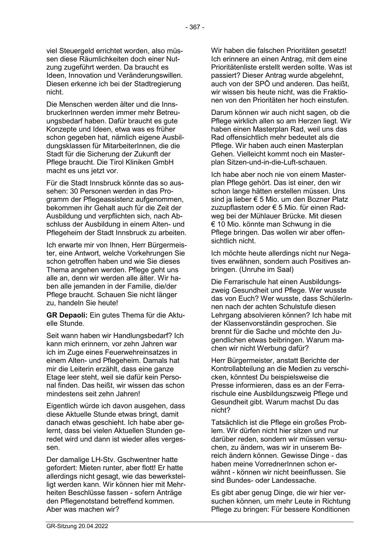 GR Depaoli: Ein gutes Thema für die Aktuelle Stunde.