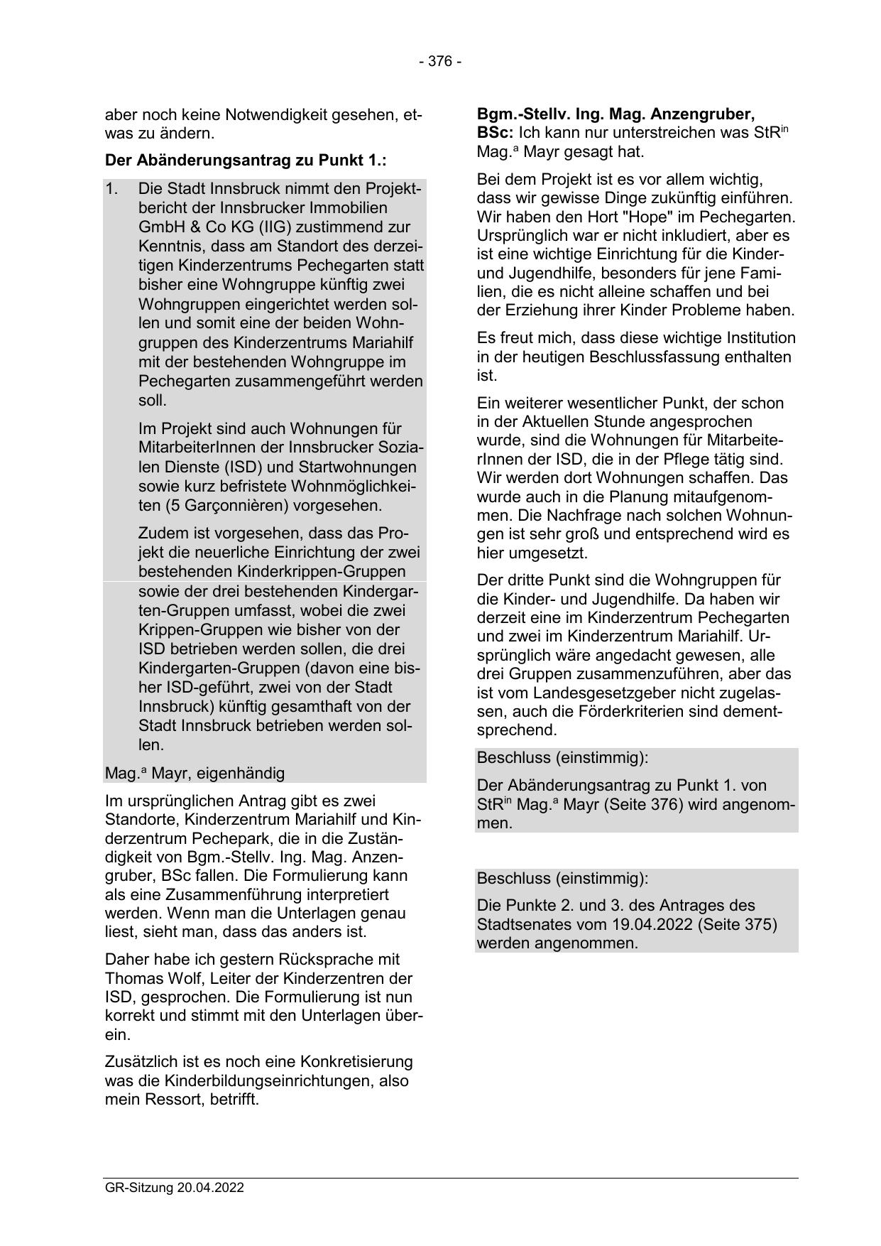 StRin Mag.a Mayr (Seite 376) wird angenommen.