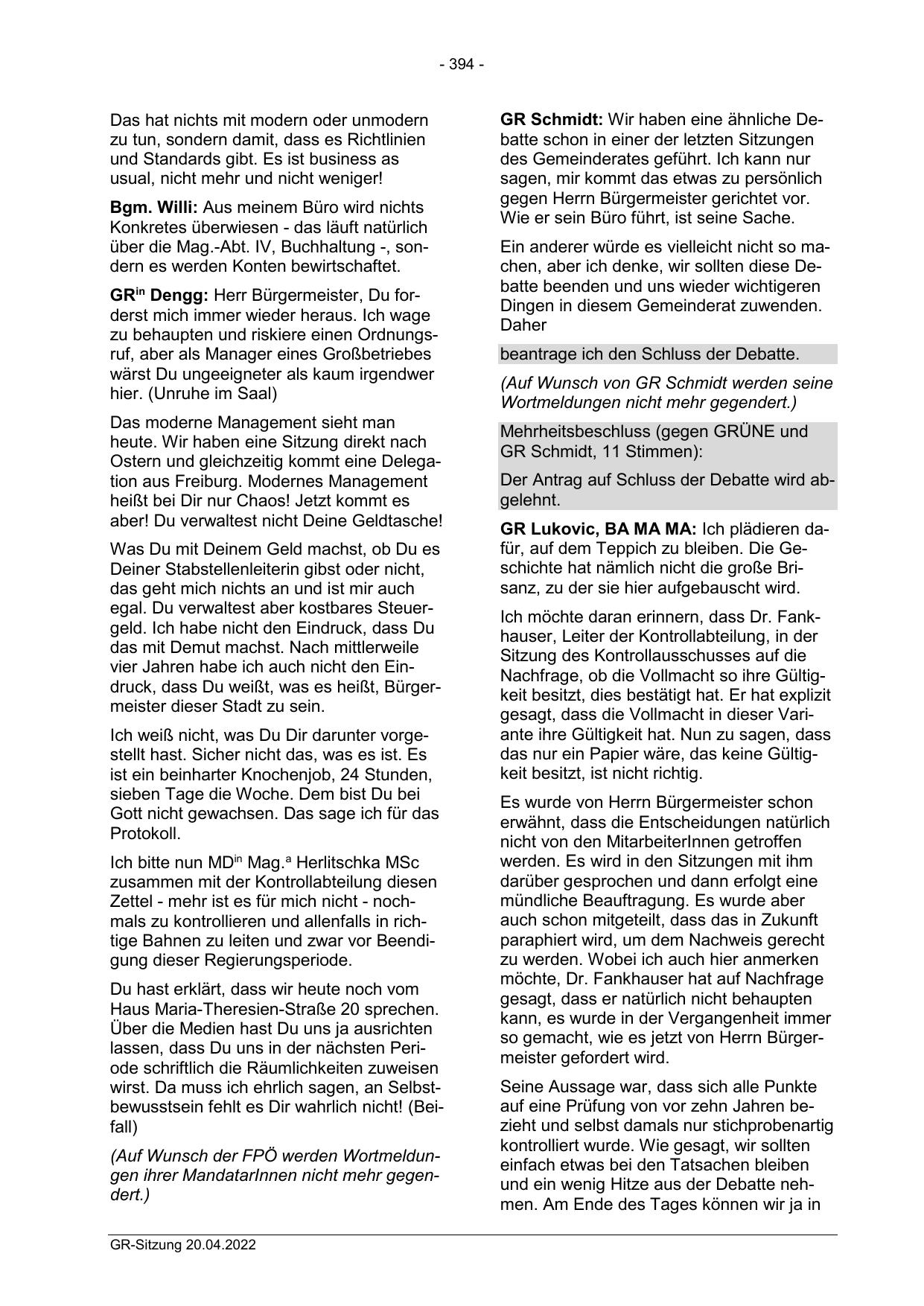 (Auf Wunsch der FPÖ werden Wortmeldungen ihrer MandatarInnen nicht mehr gegendert.)