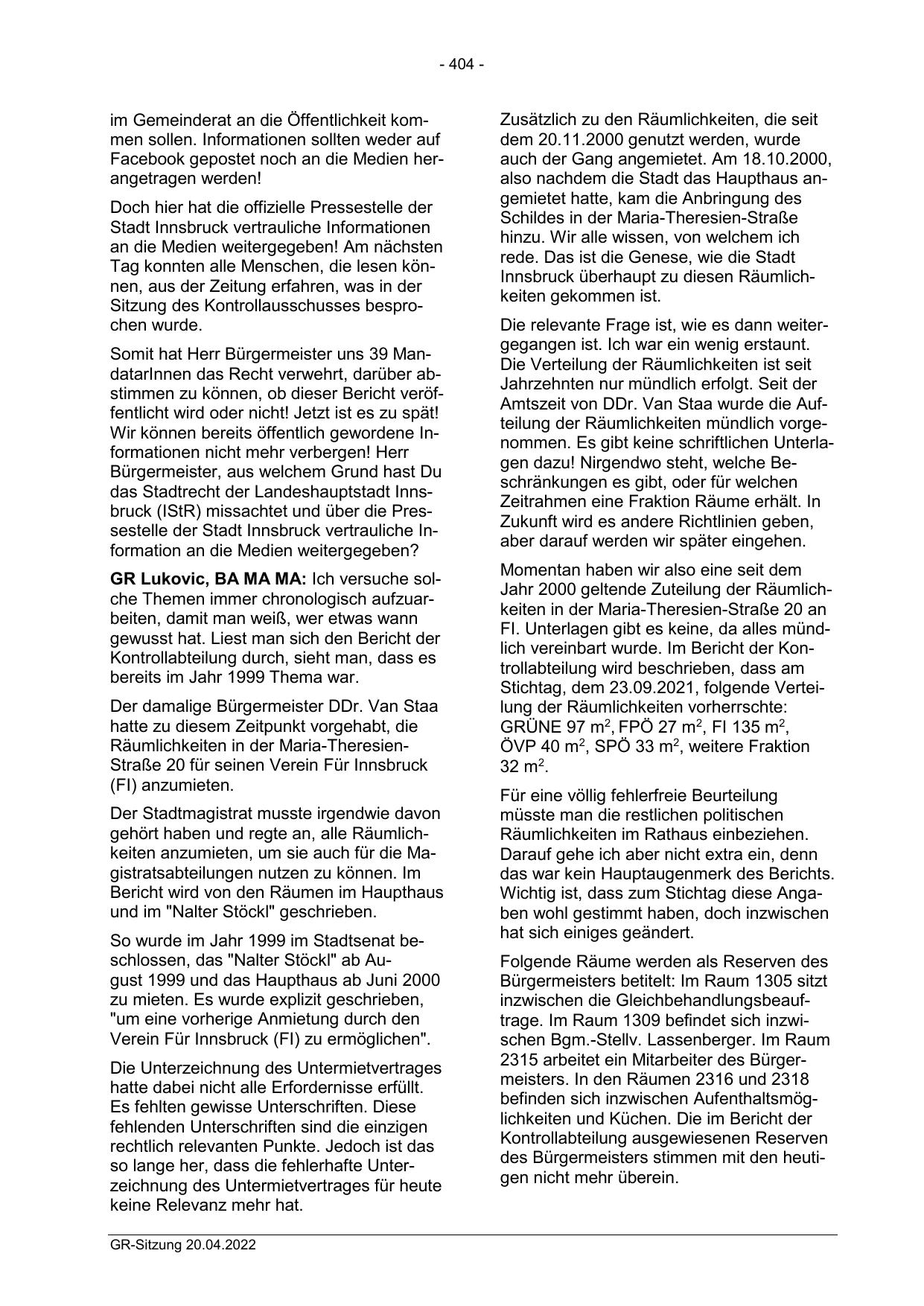 GR Lukovic, BA MA MA: Ich versuche solche Themen immer chronologisch aufzuarbeiten, damit man weiß, wer etwas wann