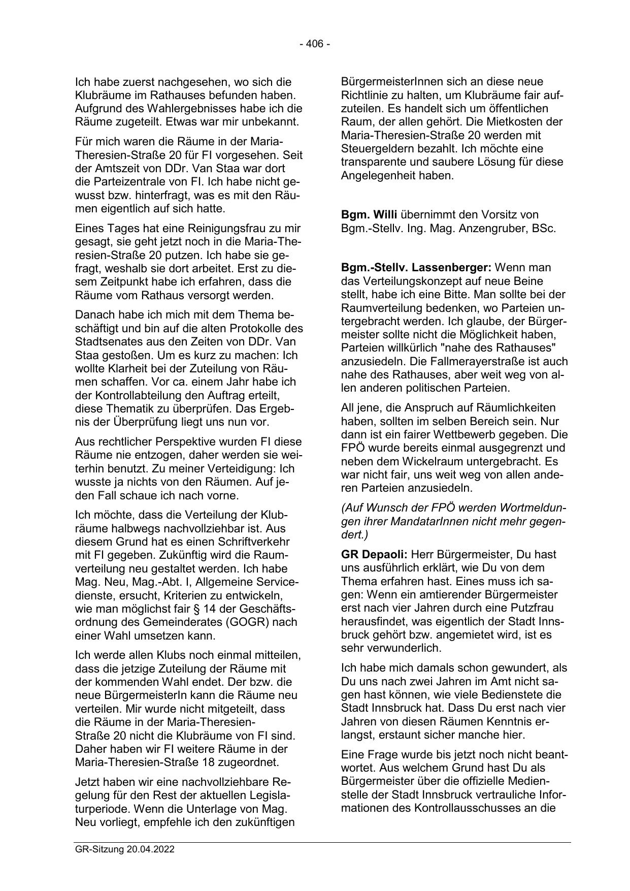 Raumverteilung bedenken, wo Parteien untergebracht werden. Ich glaube, der Bürgermeister sollte nicht die Möglichkeit haben,