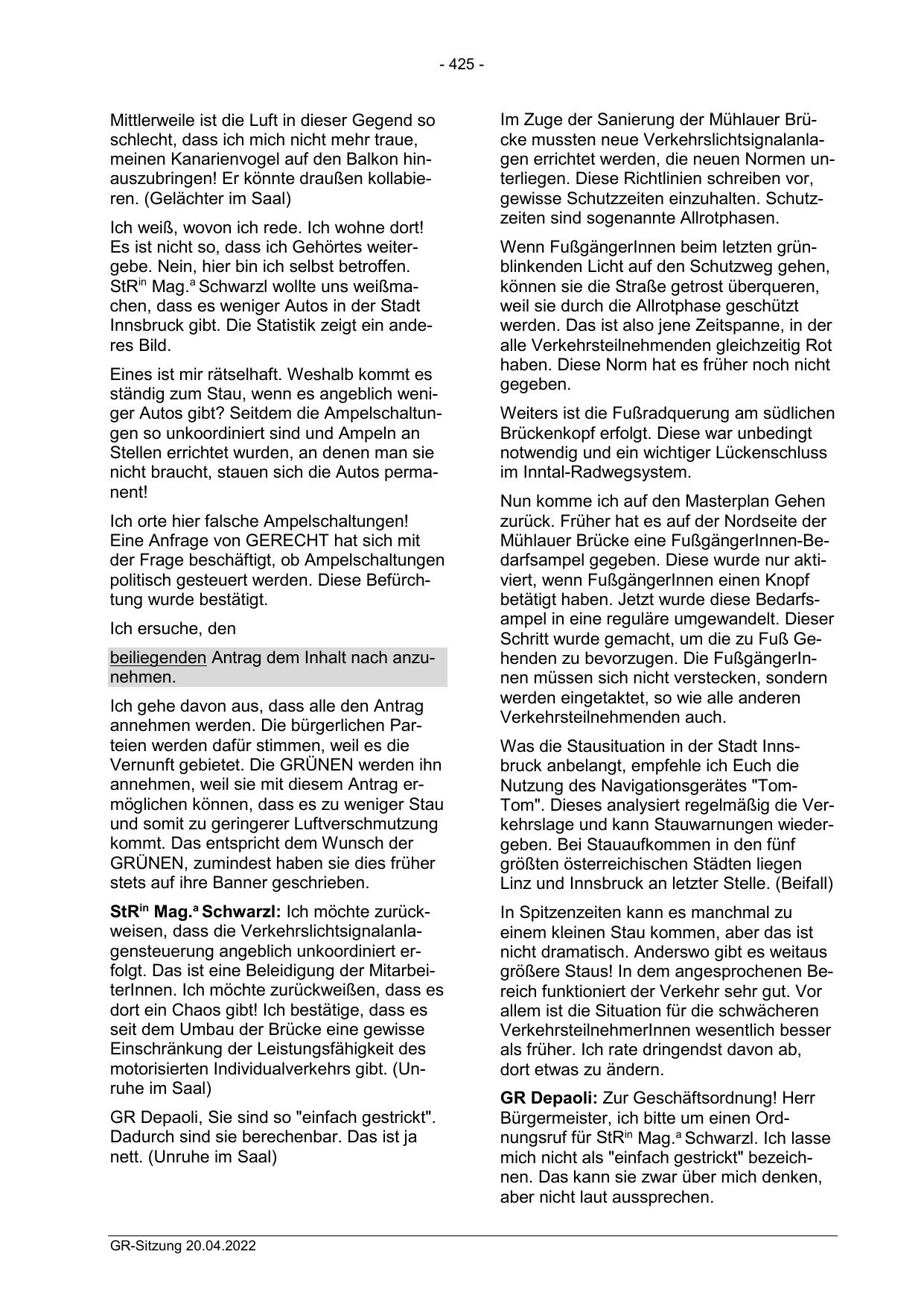 GR Depaoli: Zur Geschäftsordnung! Herr
