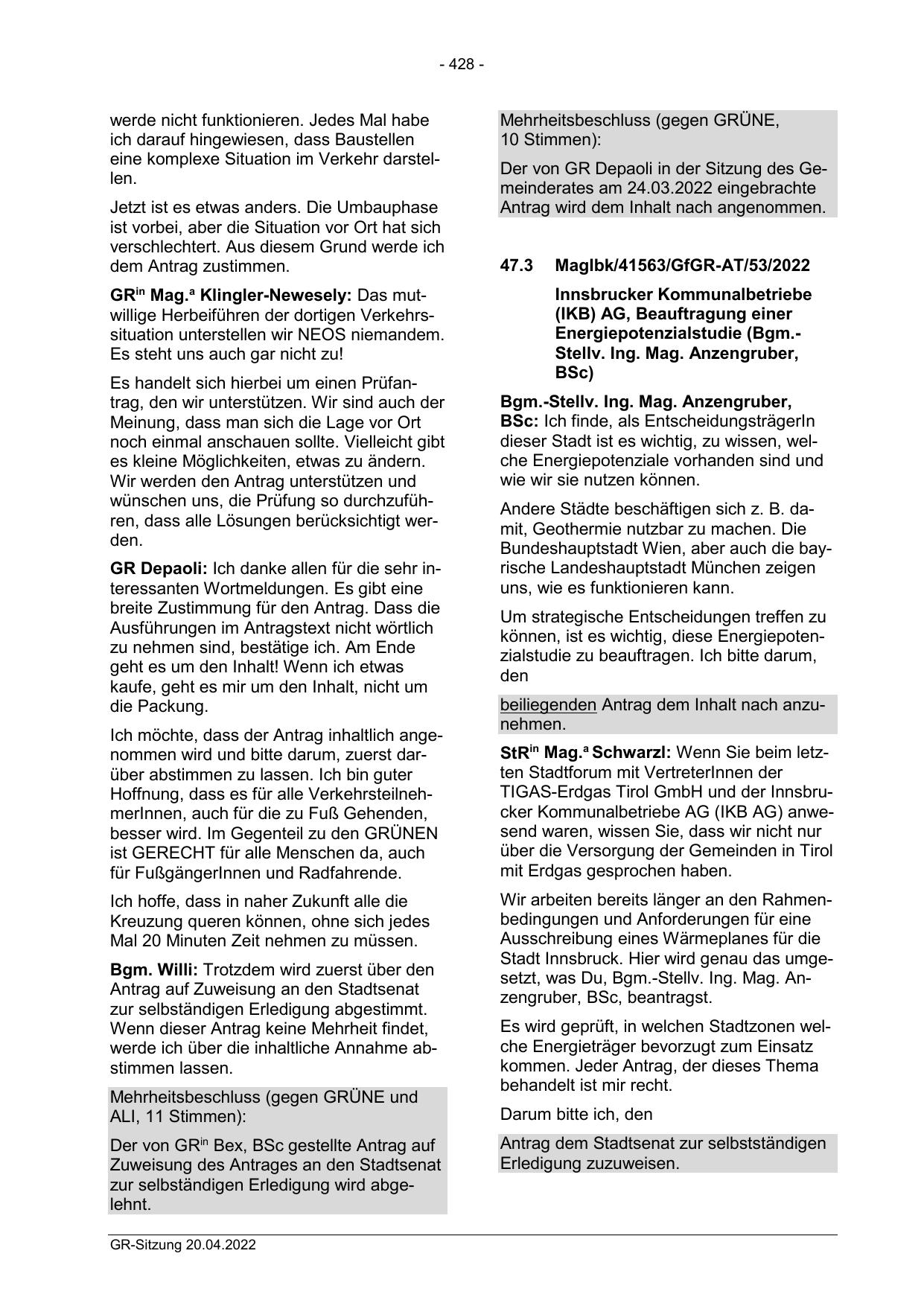 Der von GR Depaoli in der Sitzung des Gemeinderates am 24.03.2022 eingebrachte