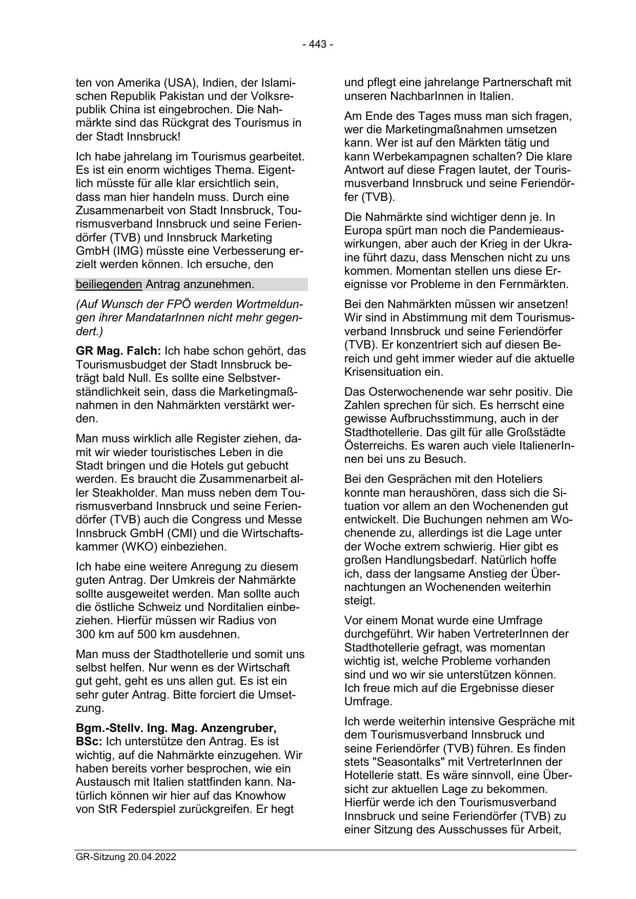 (Auf Wunsch der FPÖ werden Wortmeldungen ihrer MandatarInnen nicht mehr gegendert.)