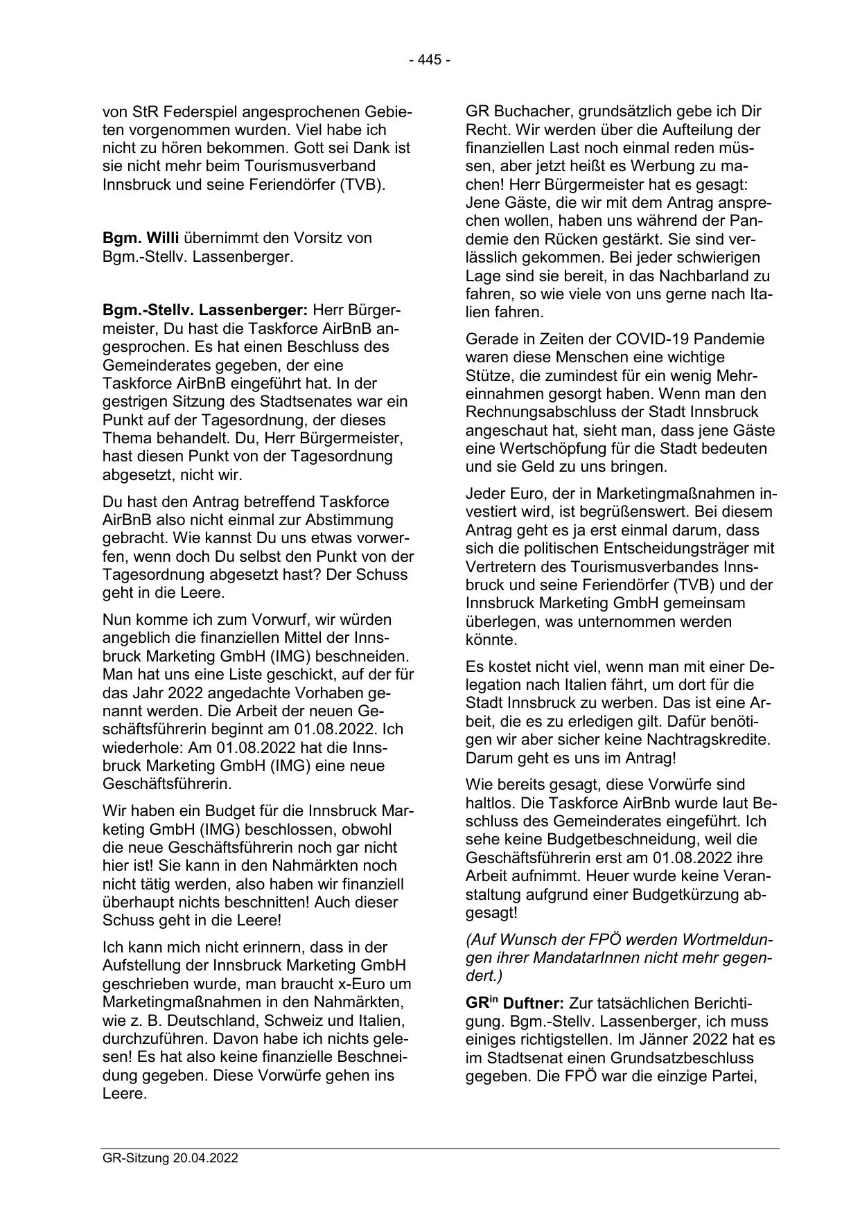 Bgm.-Stellv. Lassenberger: Herr Bürgermeister, Du hast die Taskforce AirBnB angesprochen. Es hat einen Beschluss des