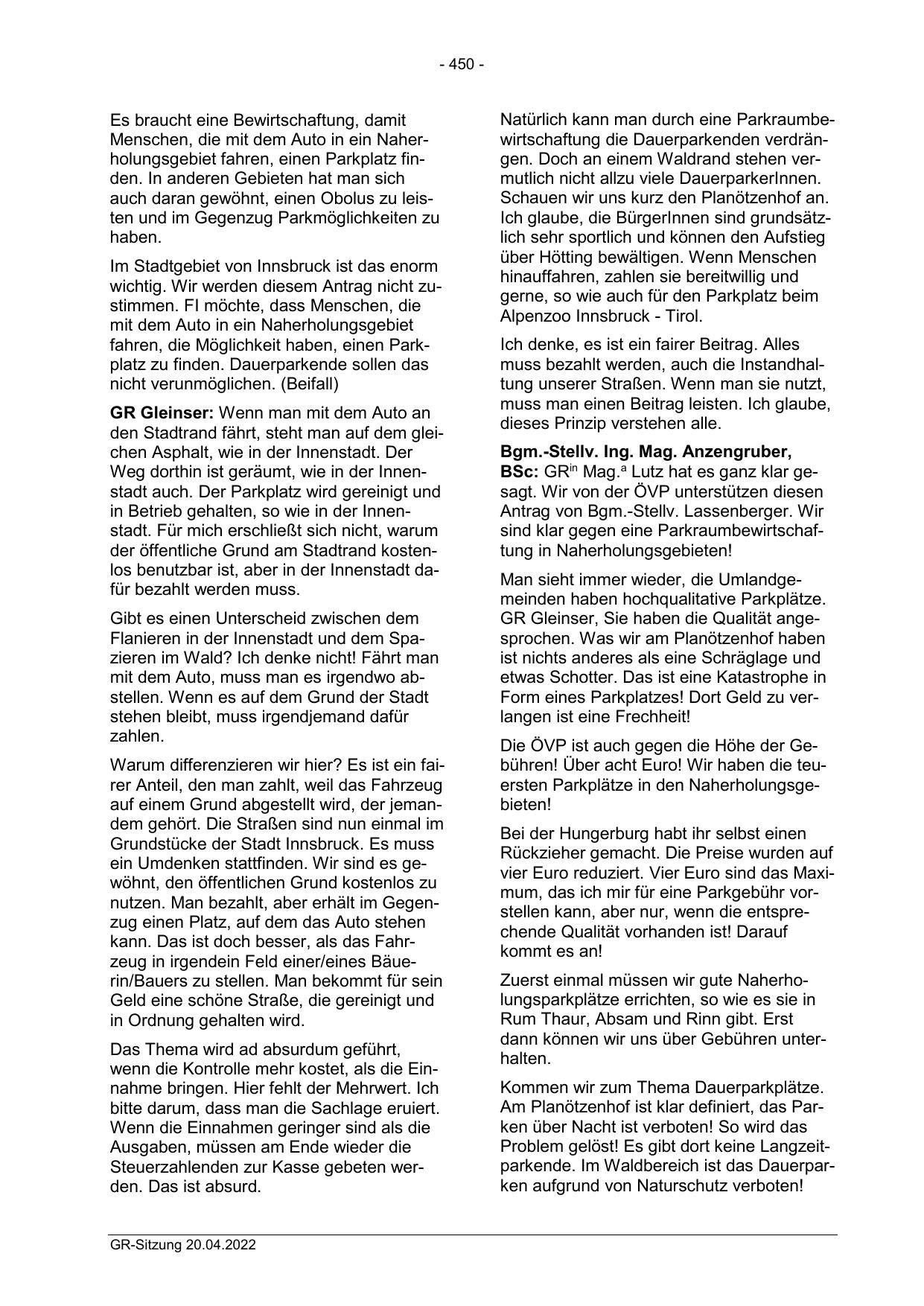 Die ÖVP ist auch gegen die Höhe der Gebühren! Über acht Euro! Wir haben die teuersten Parkplätze in den Naherholungsgebieten!