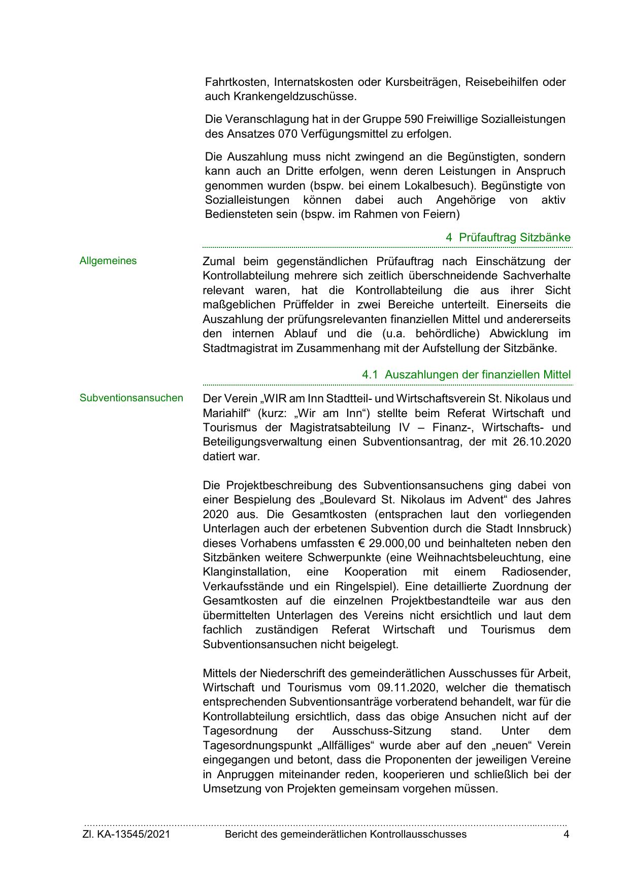 Unterlagen auch der erbetenen Subvention durch die Stadt Innsbruck)