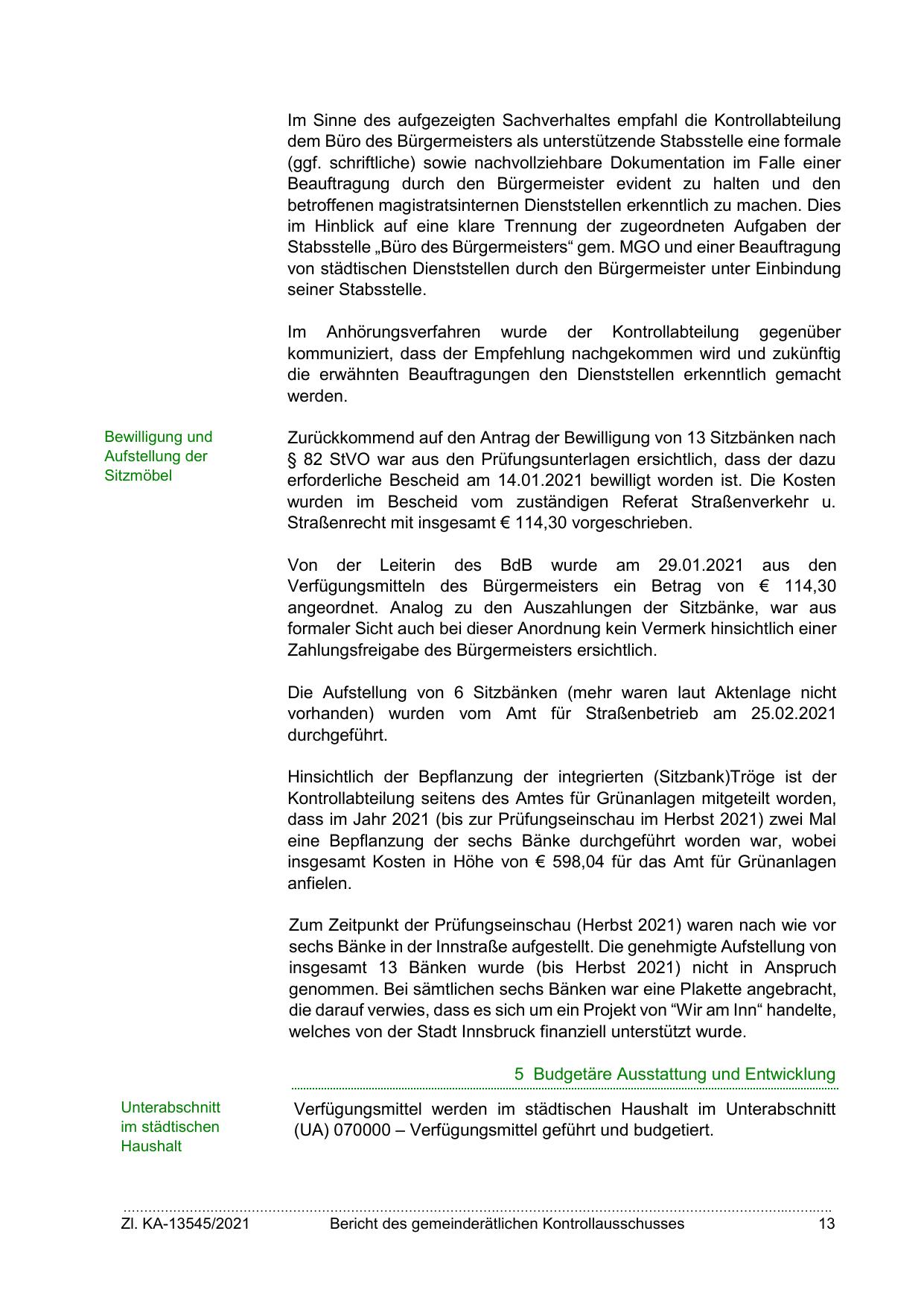 Kontrollabteilung seitens des Amtes für Grünanlagen mitgeteilt worden,