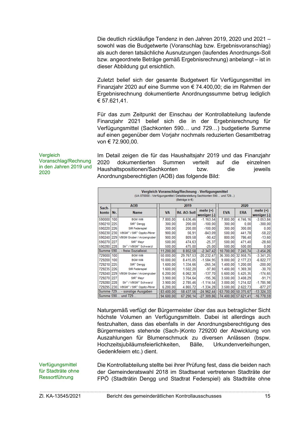 bzw. angeordnete Beträge gemäß Ergebnisrechnung) anbelangt – ist in