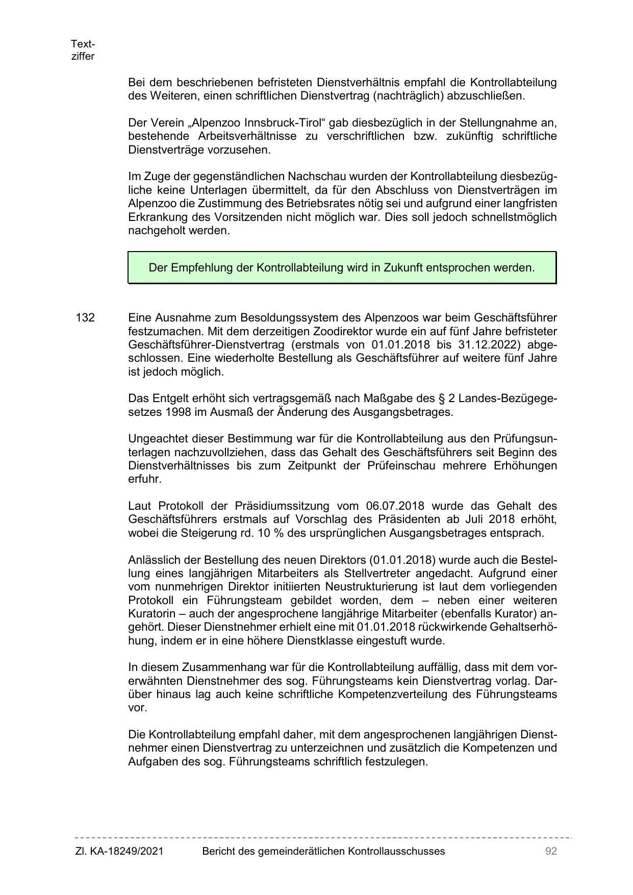 In diesem Zusammenhang war für die Kontrollabteilung auffällig, dass mit dem vorerwähnten Dienstnehmer des sog. Führungsteams kein Dienstvertrag vorlag. Darüber hinaus lag auch keine schriftliche Kompetenzverteilung des Führungsteams