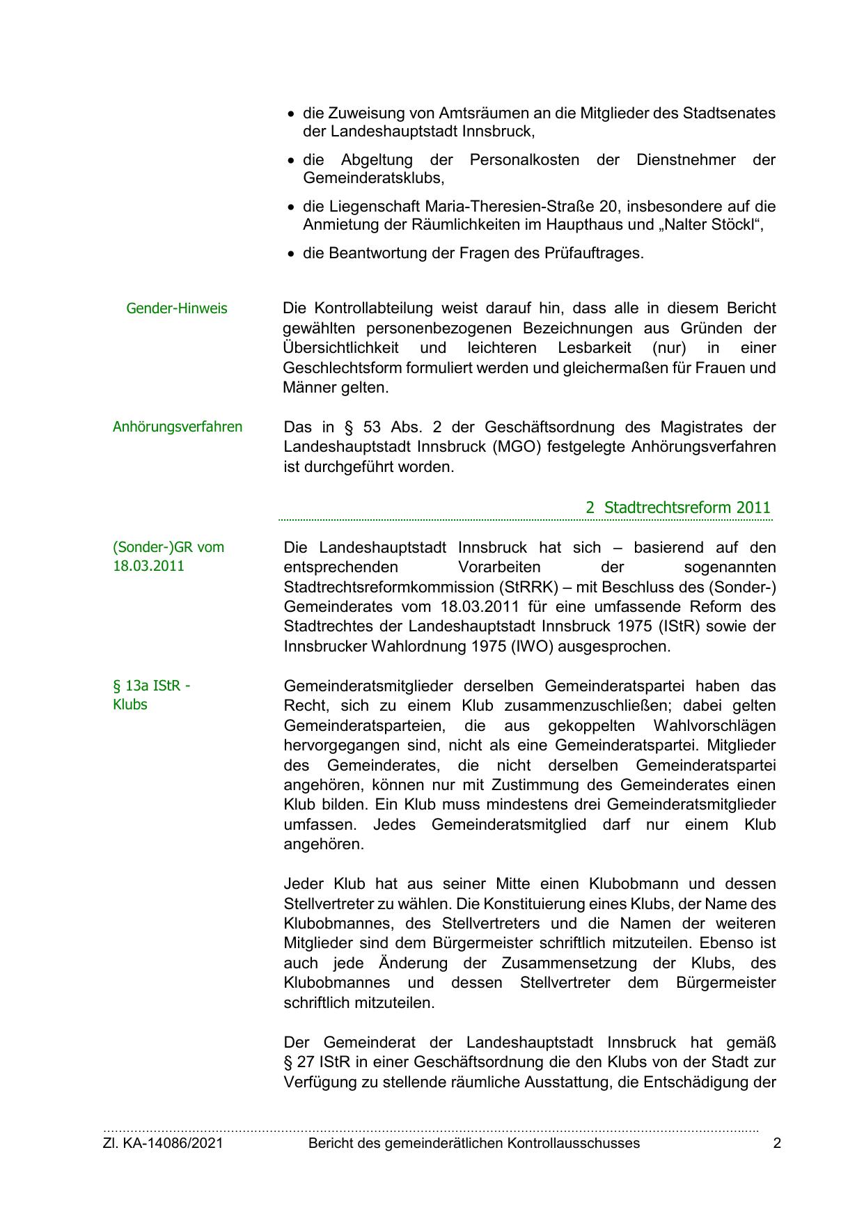 Landeshauptstadt Innsbruck (MGO) festgelegte Anhörungsverfahren