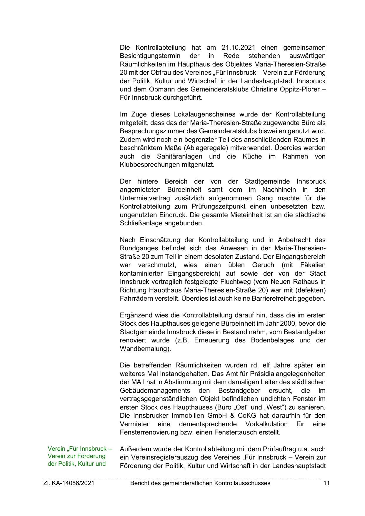 Ergänzend wies die Kontrollabteilung darauf hin, dass die im ersten