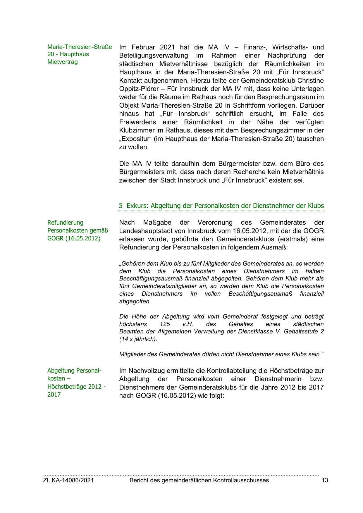 fünf Gemeinderatsmitglieder an, so werden dem Klub die Personalkosten
