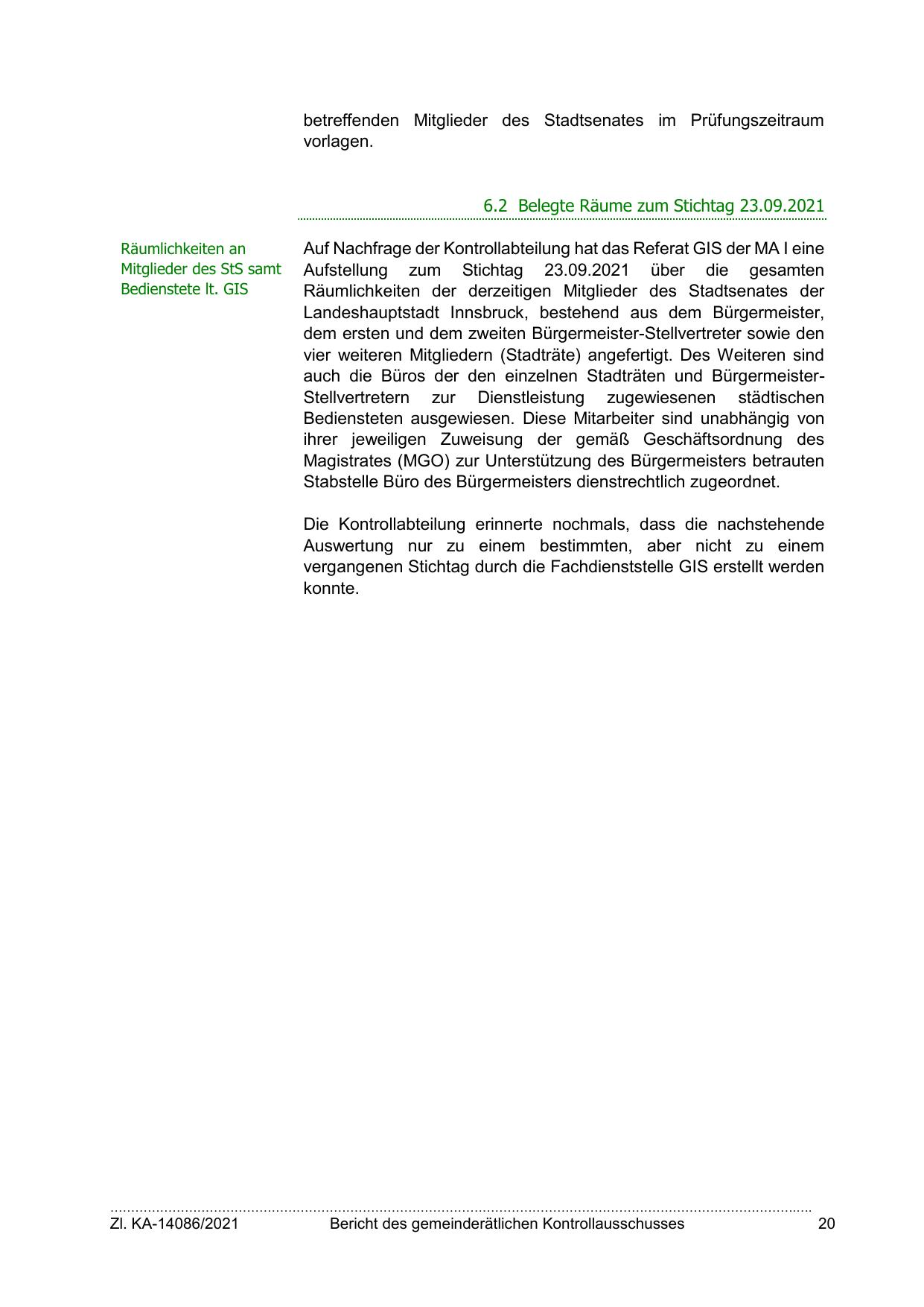 betreffenden Mitglieder des Stadtsenates im Prüfungszeitraum