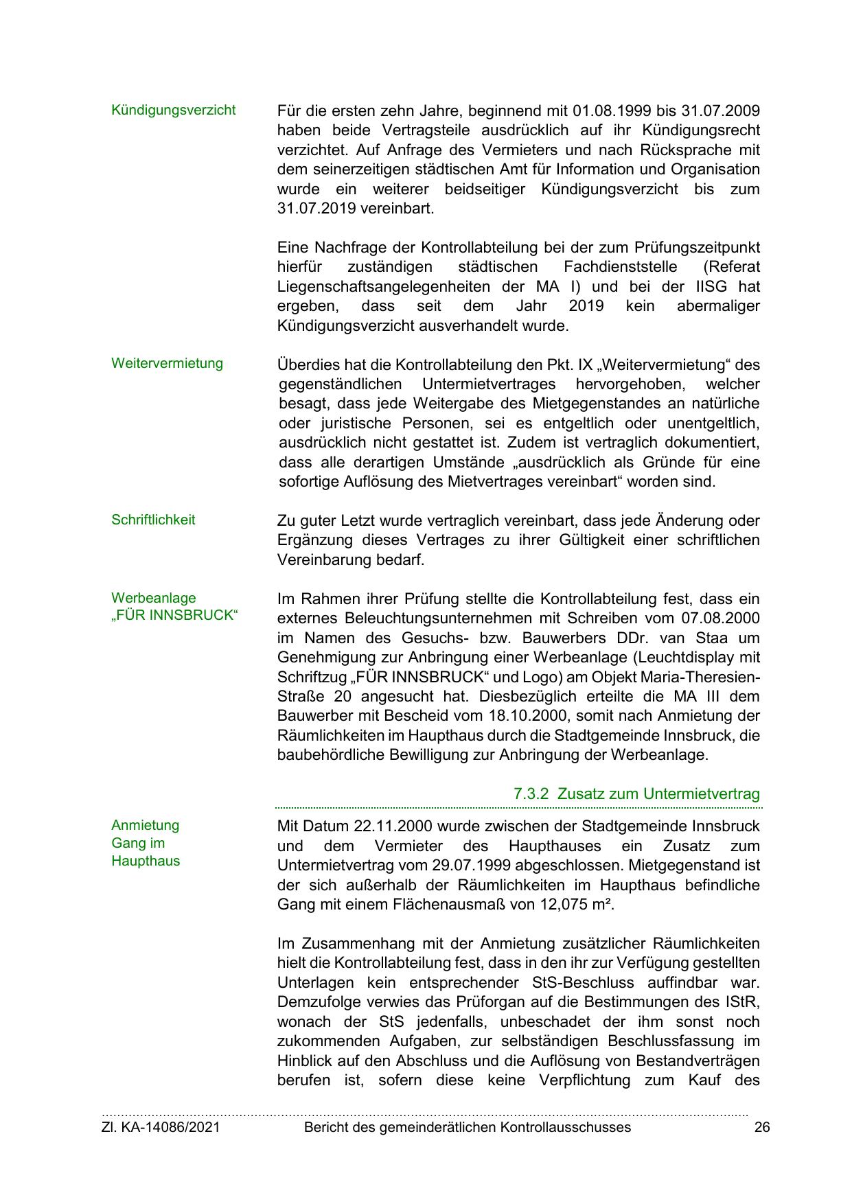 Überdies hat die Kontrollabteilung den Pkt. IX „Weitervermietung“ des