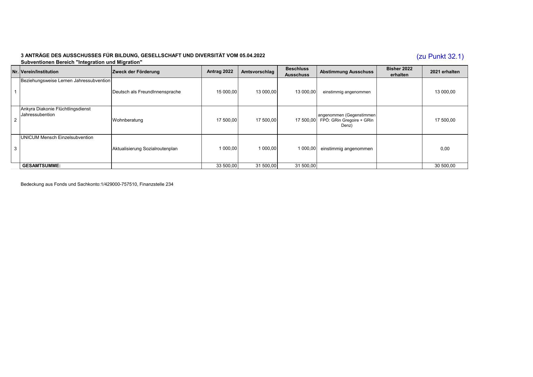 3 ANTRÄGE DES AUSSCHUSSES FÜR BILDUNG, GESELLSCHAFT UND DIVERSITÄT VOM 05.04.2022