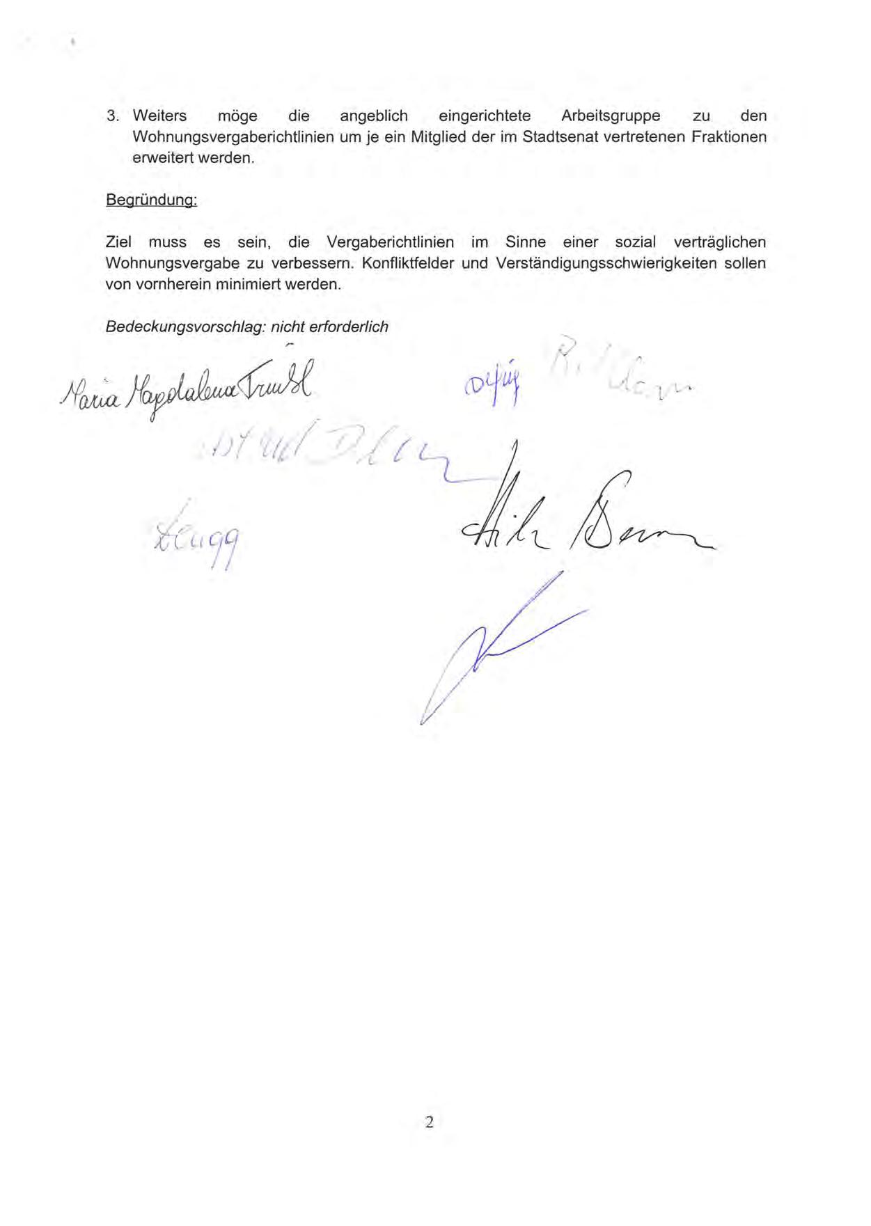 Wohnungsvergaberichtlinien um je ein Mitglied der im Stadtsenat vertretenen Fraktionen