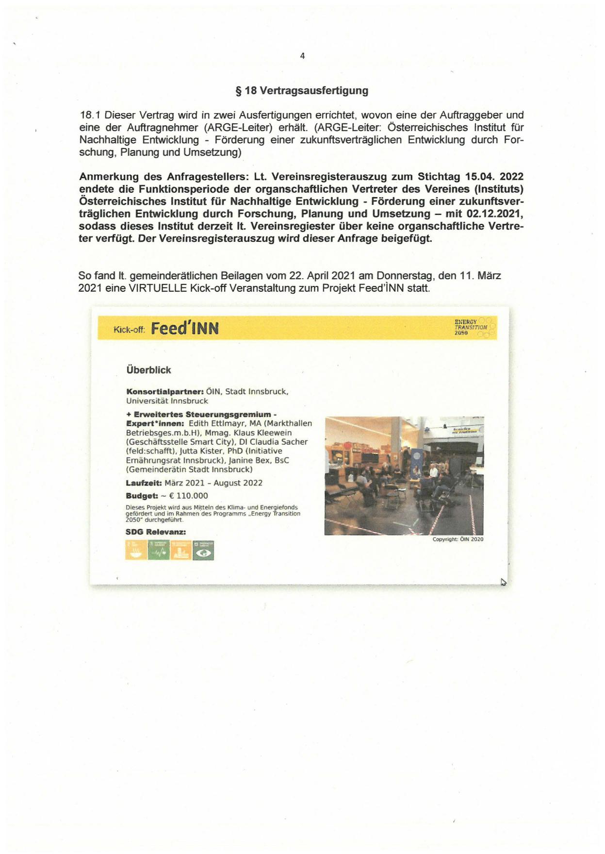 sodass dieses Institut derzeit lt. Vereinsregiester über keine organschaftliche Vertreter verfügt. Der Vereinsregisterauszug wird dieser Anfrage beigefügt.