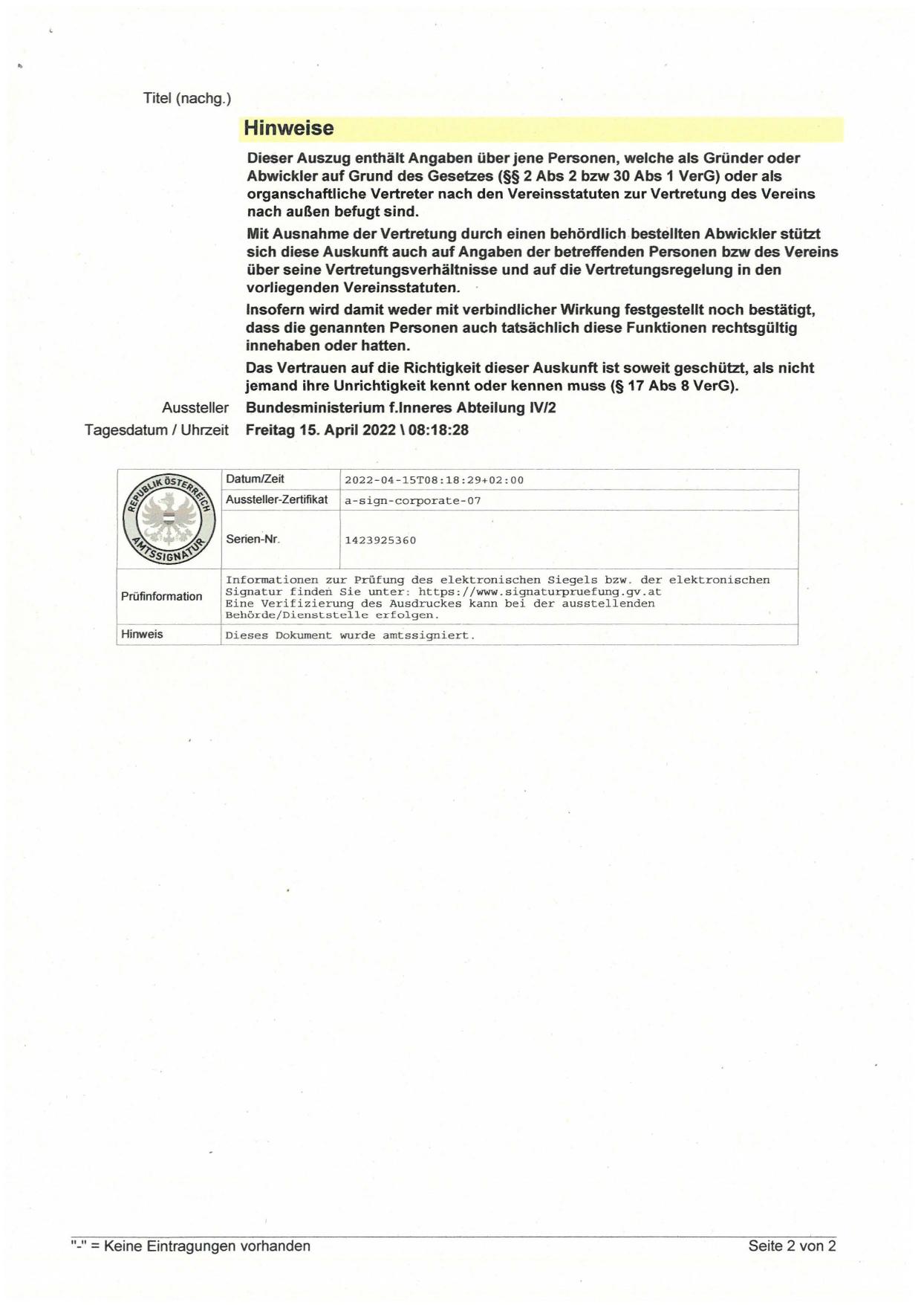 organschaftliche Vertreter nach den Vereinsstatuten zur Vertretung des Vereins