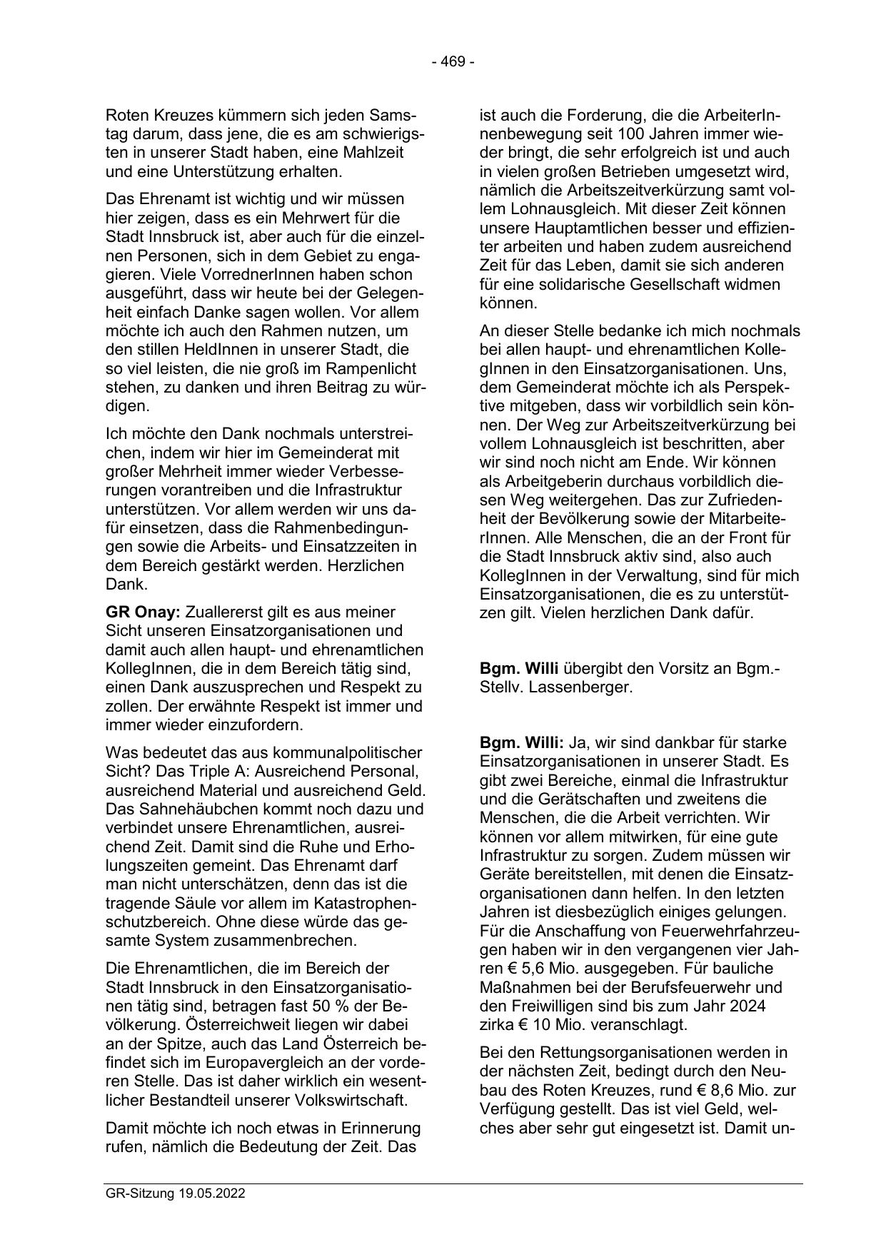 Stadt Innsbruck ist, aber auch für die einzelnen Personen, sich in dem Gebiet zu engagieren. Viele VorrednerInnen haben schon