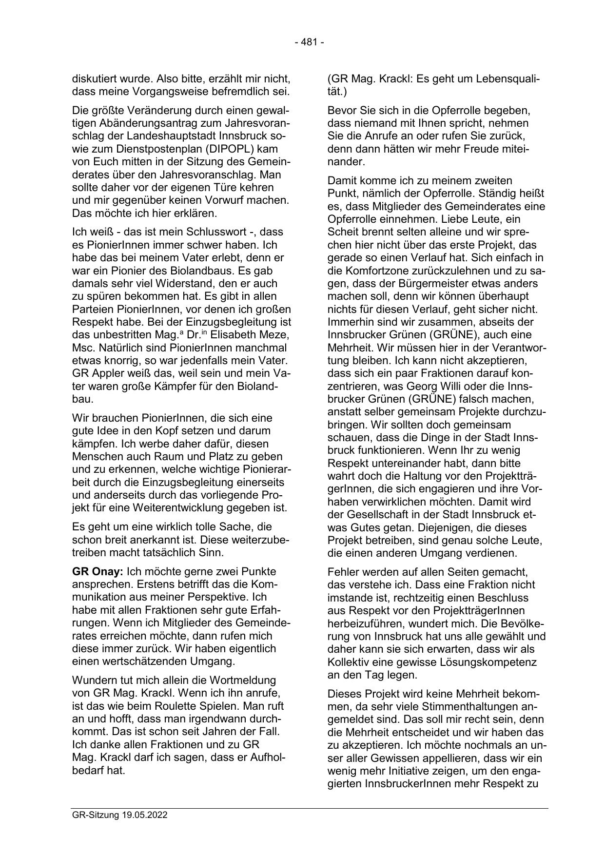 herbeizuführen, wundert mich. Die Bevölkerung von Innsbruck hat uns alle gewählt und