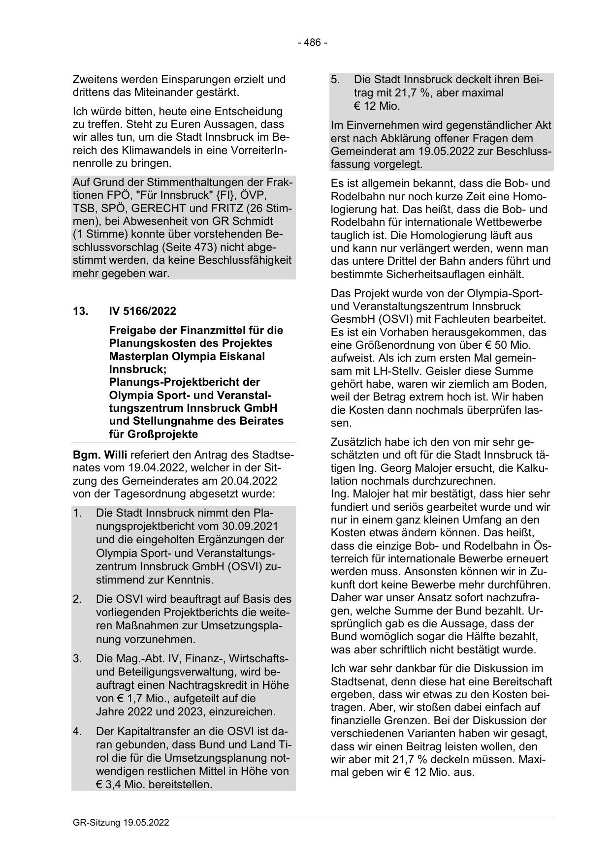 Olympia Sport- und Veranstaltungszentrum Innsbruck GmbH (OSVI) zustimmend zur Kenntnis.