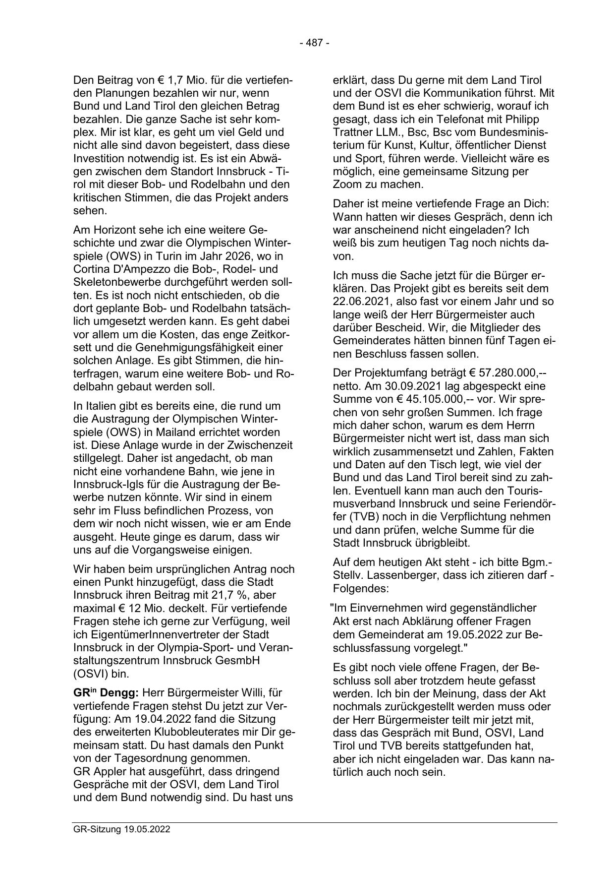 Investition notwendig ist. Es ist ein Abwägen zwischen dem Standort Innsbruck - Tirol mit dieser Bob- und Rodelbahn und den