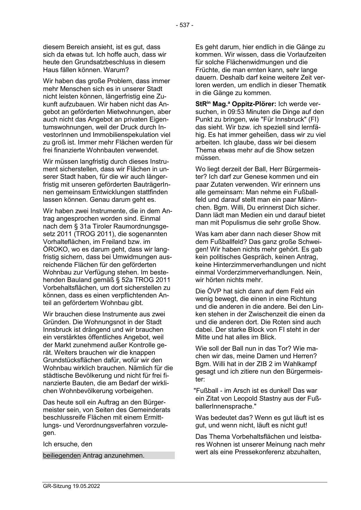 Das Thema Vorbehaltsflächen und leistbares Wohnen ist unserer Meinung nach mehr