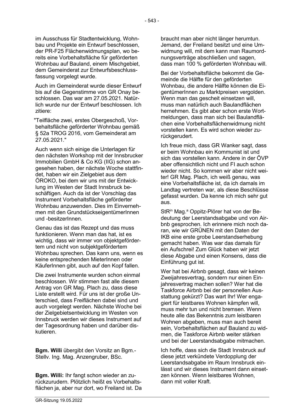 Leerstandsabgabe im Raum Innsbruck einlässt und wir dieses Instrument dann einsetzen können. Wenn leistbares Wohnen,