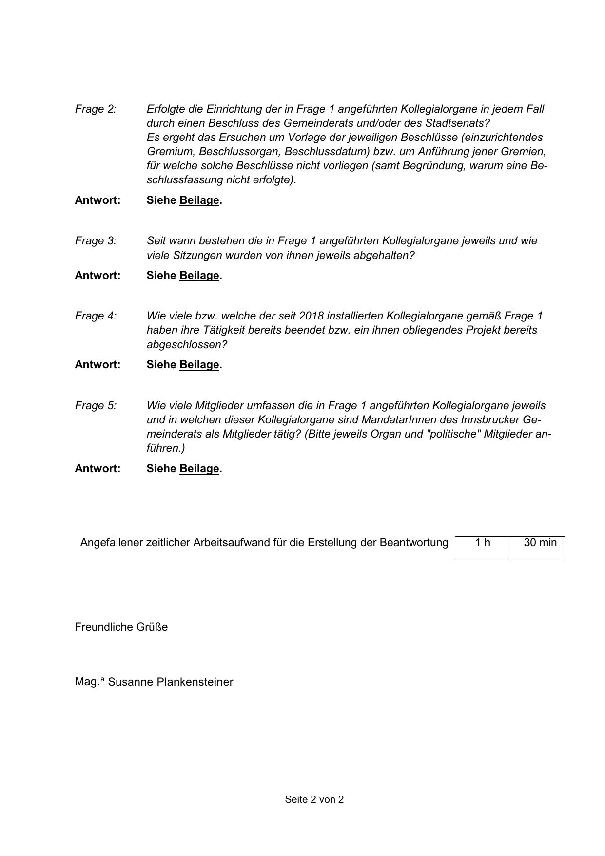 und in welchen dieser Kollegialorgane sind MandatarInnen des Innsbrucker Gemeinderats als Mitglieder tätig? (Bitte jeweils Organ und "politische" Mitglieder anführen.)